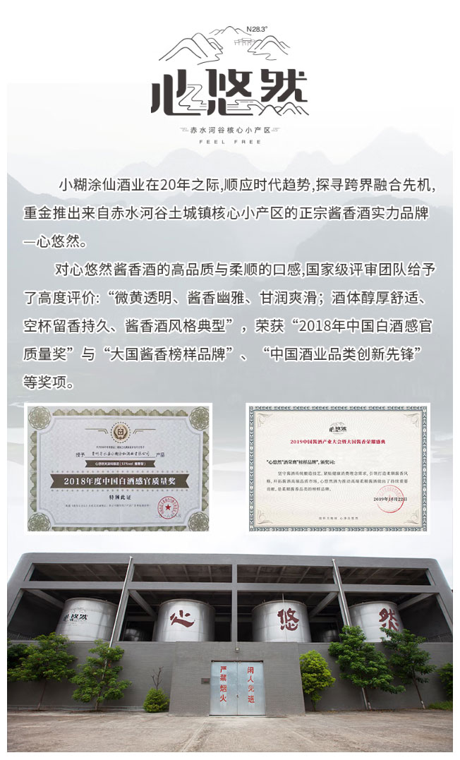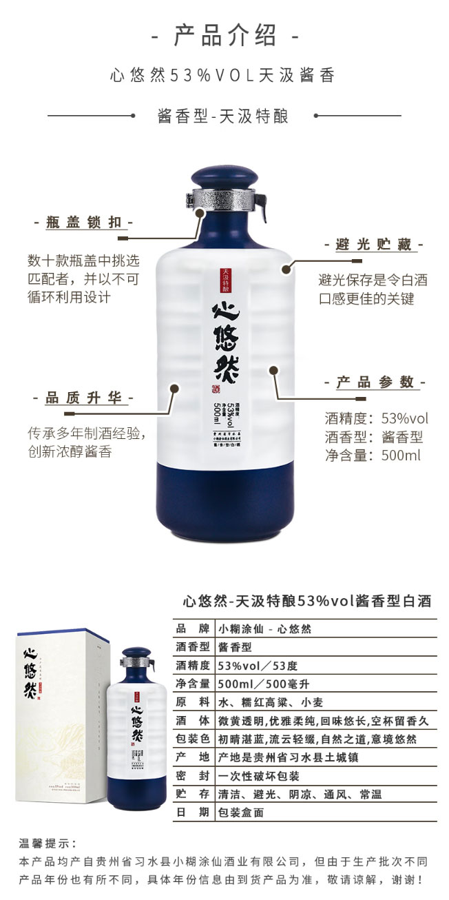 小糊涂仙心悠然人和佳品 53度500ml 酱香型白酒 箱规1*6瓶【包邮直发】