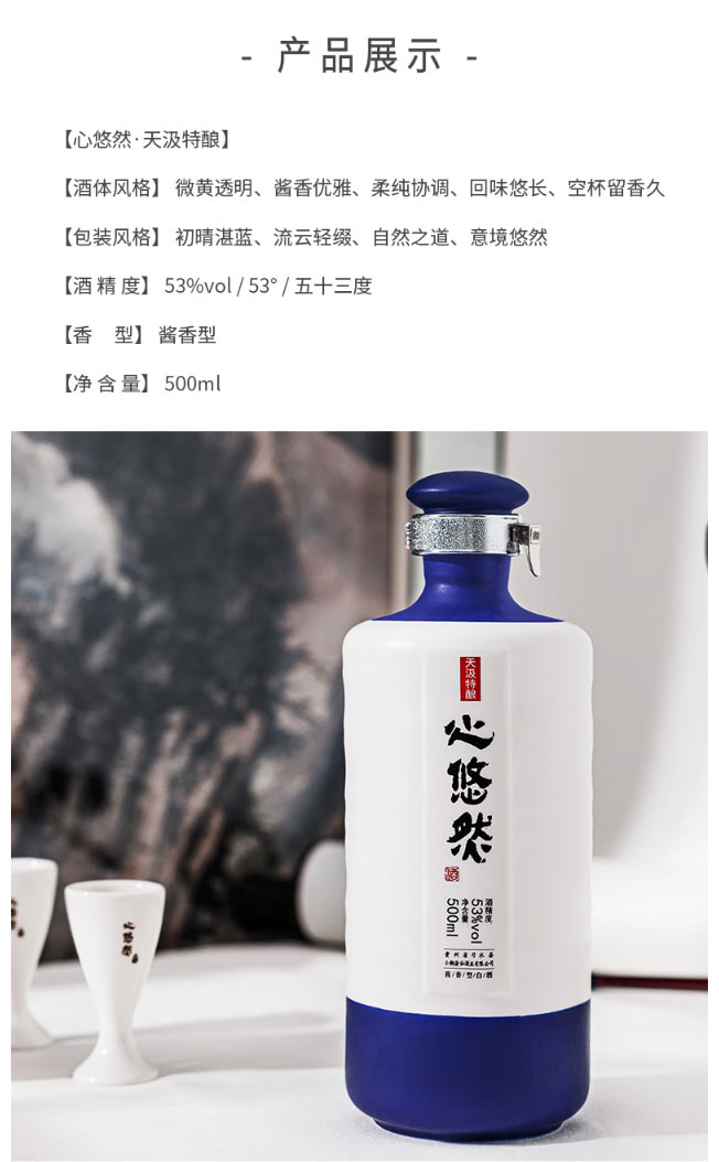 小糊涂仙心悠然天汲 53度500ml 酱香型白酒 箱规1*6瓶【包邮直发】