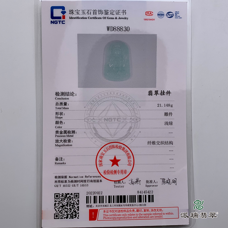 派瑞翡翠 翡翠挂件 糯种 浅绿