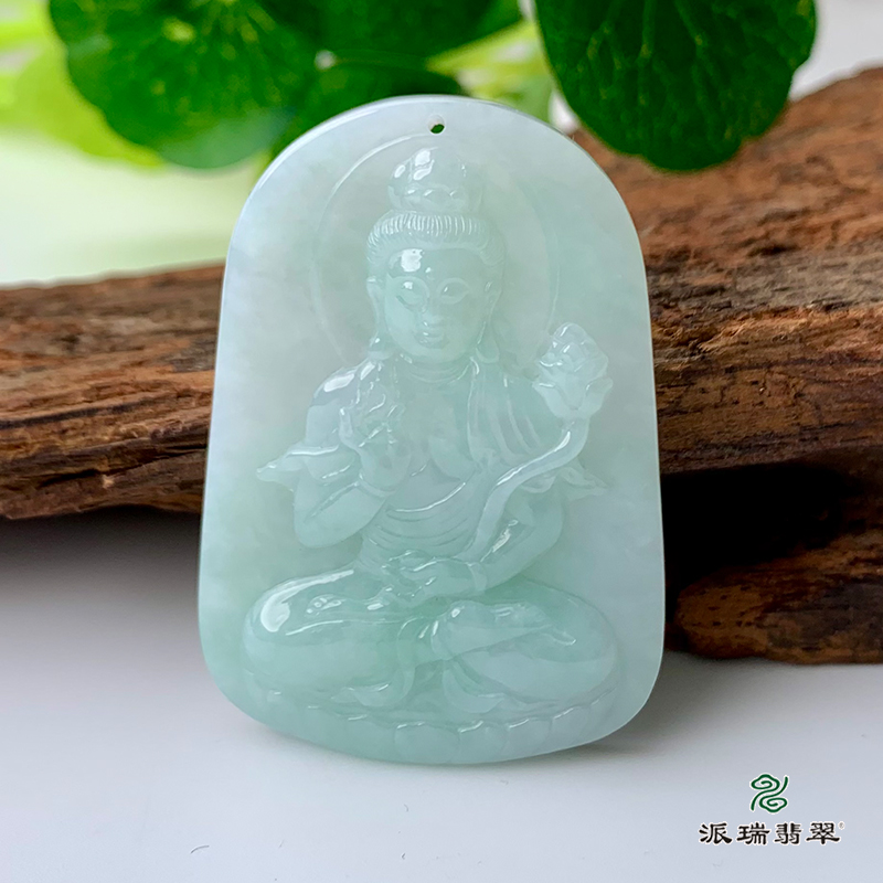 派瑞翡翠 翡翠挂件 大势至菩萨 糯种 绿色