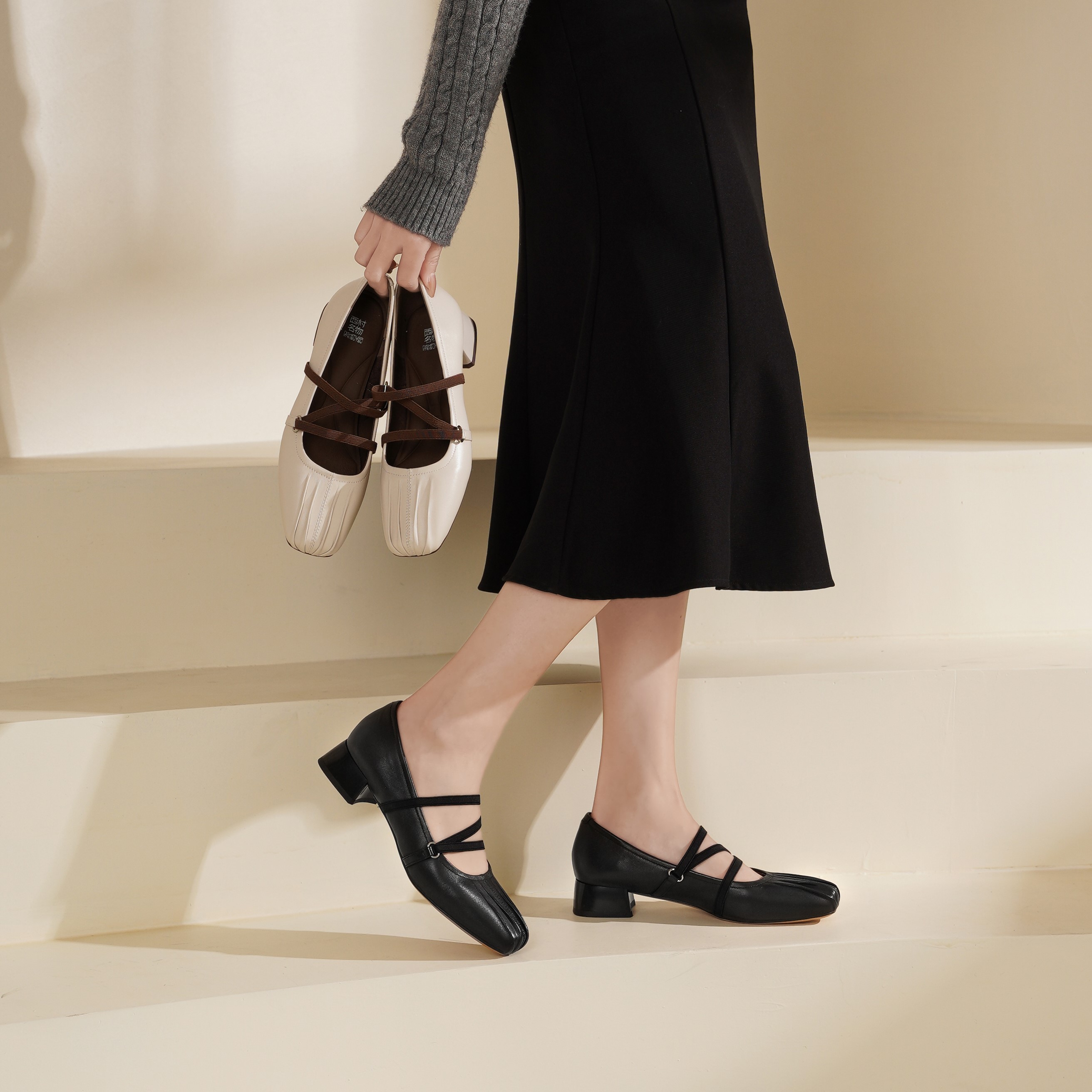 西村名物2025年春季新款舒适中跟复古百搭低跟玛丽珍单鞋X25AE14821