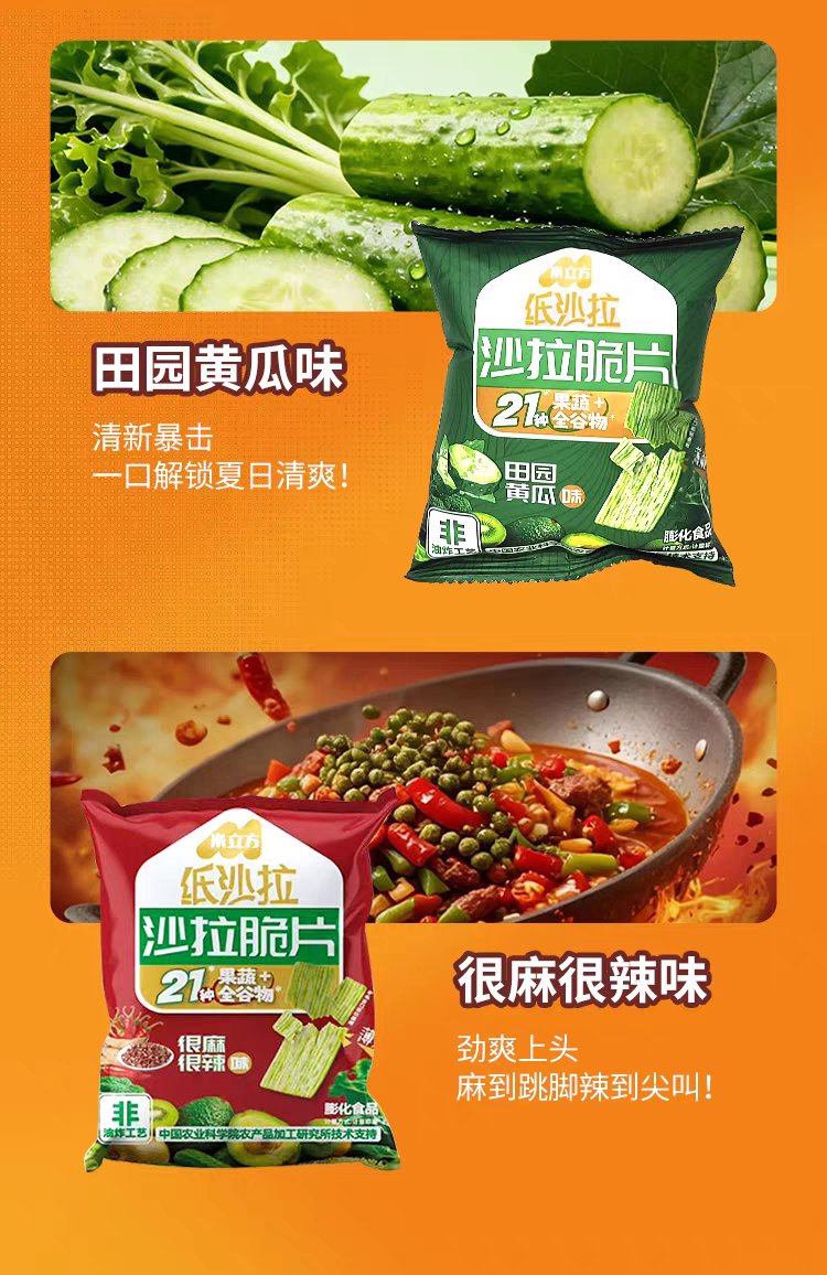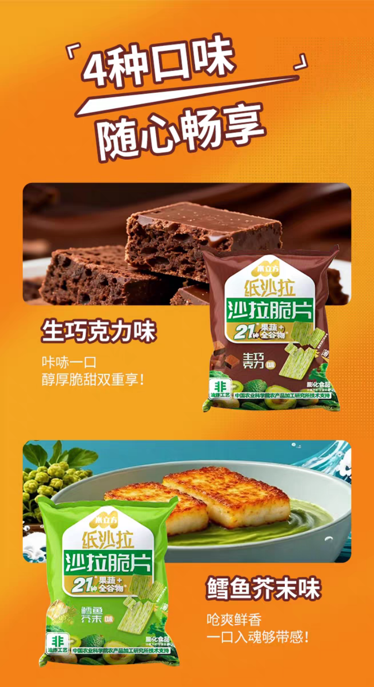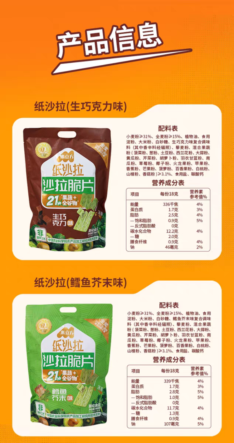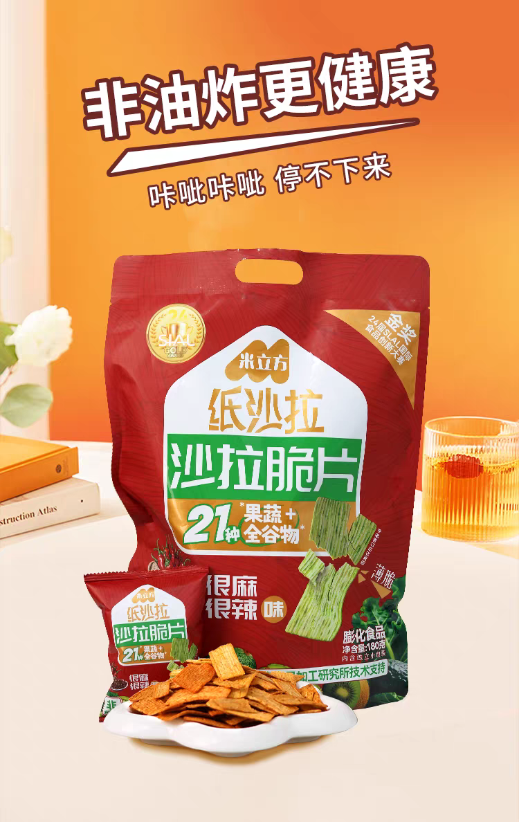 自营(山蒙海时)-米立方纸沙拉鳕鱼芥末味180g*3袋非油炸21种果蔬粗粮锅巴休闲零食