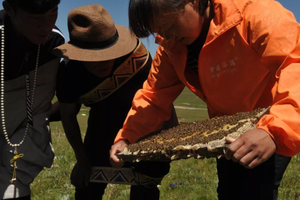陈振华父子俩在守护这群濒临灭绝的中华蜂的同时,带领着雪域高原的贫困游牧民们一起养蜂,帮助当地牧民的经济发展。