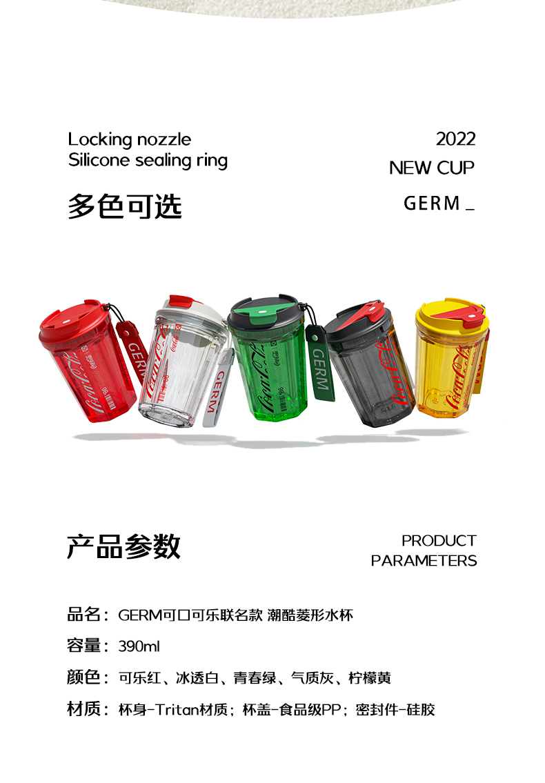 GERM 可口可乐联名款潮酷水杯直饮杯大口径易清洗 390ml