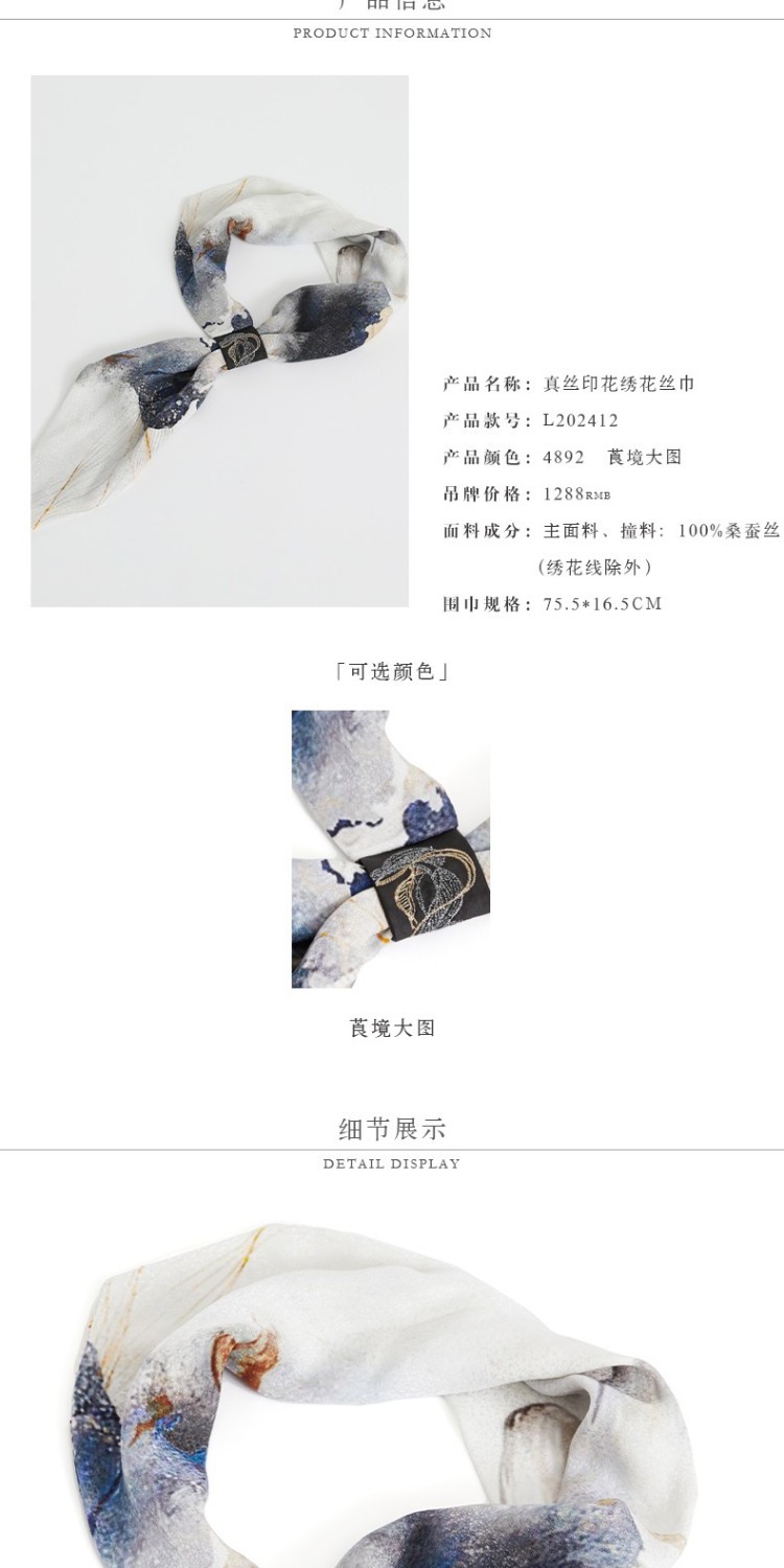 TANGY/天意雪傍系列真丝印花刺绣丝巾