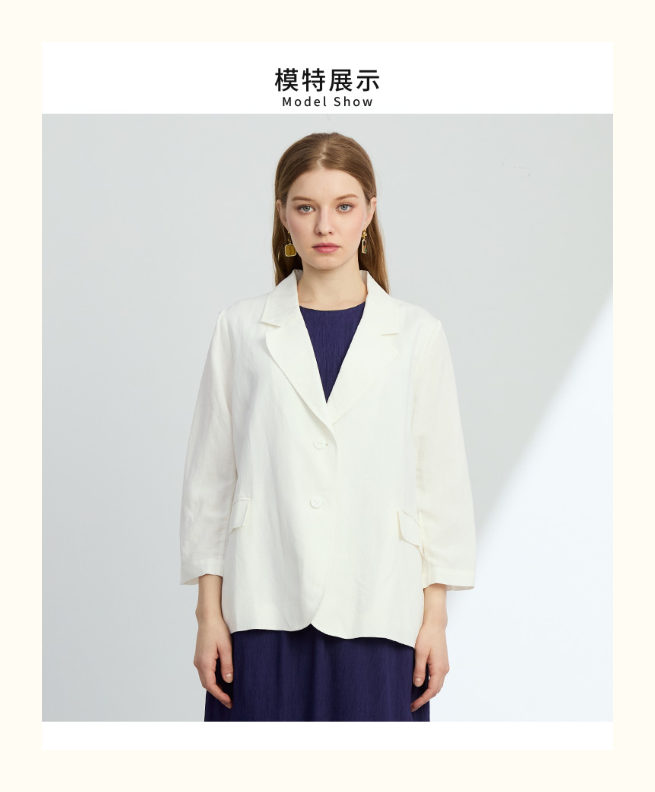 VIVIAN LIU D2443107 25春女装翻领两粒扣翻盖口袋七分袖宽松西装