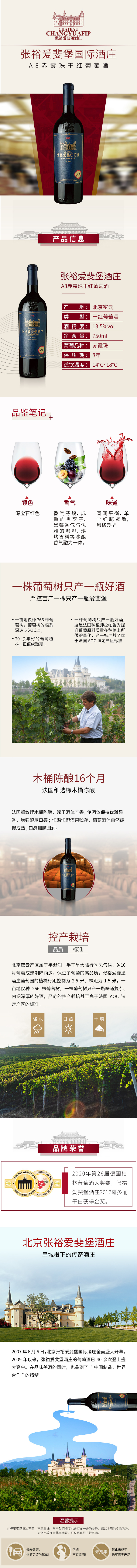 张裕北京爱斐堡国际酒庄 A8 赤霞珠干红葡萄酒750ml