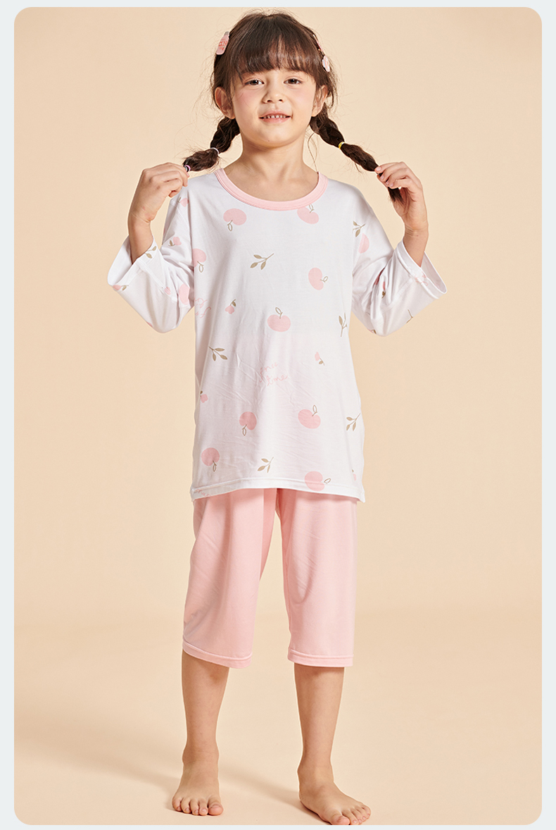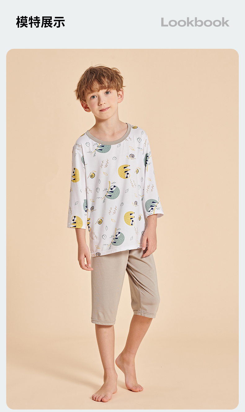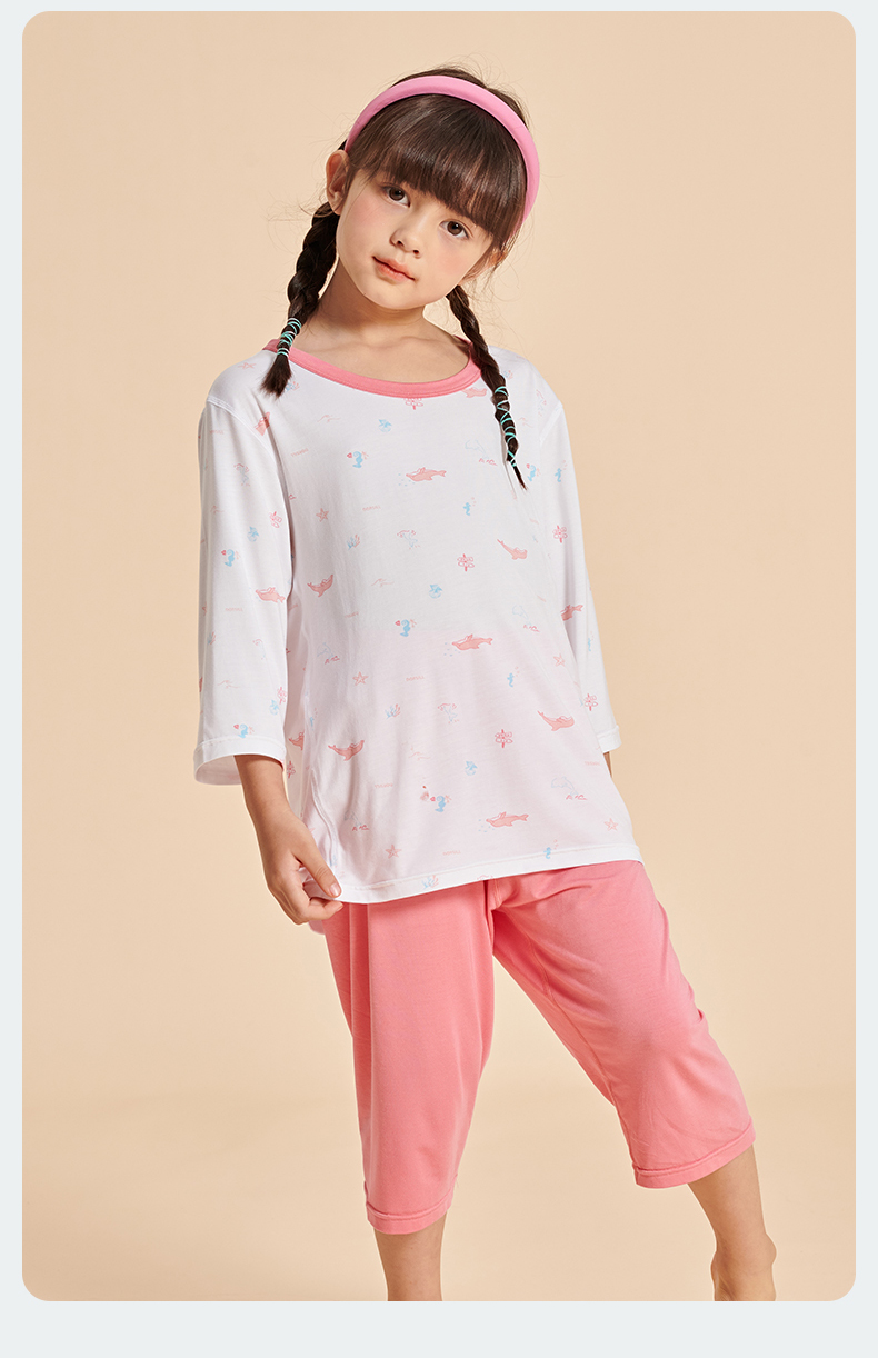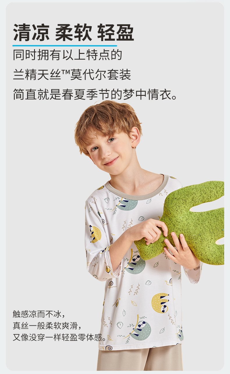 【品名】莫代尔儿童奥地利进口兰精天丝莫代尔凉感7分袖套装