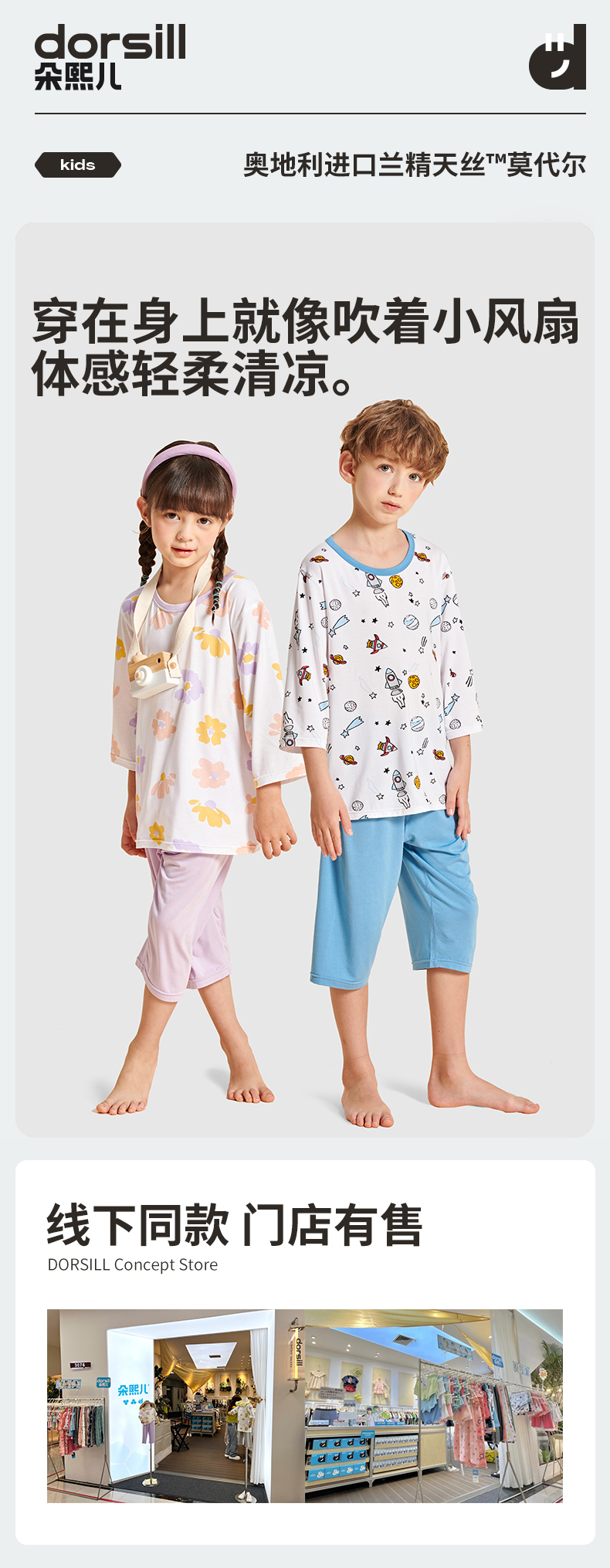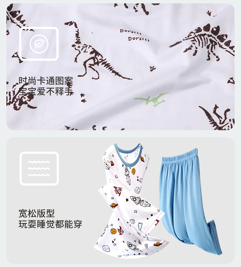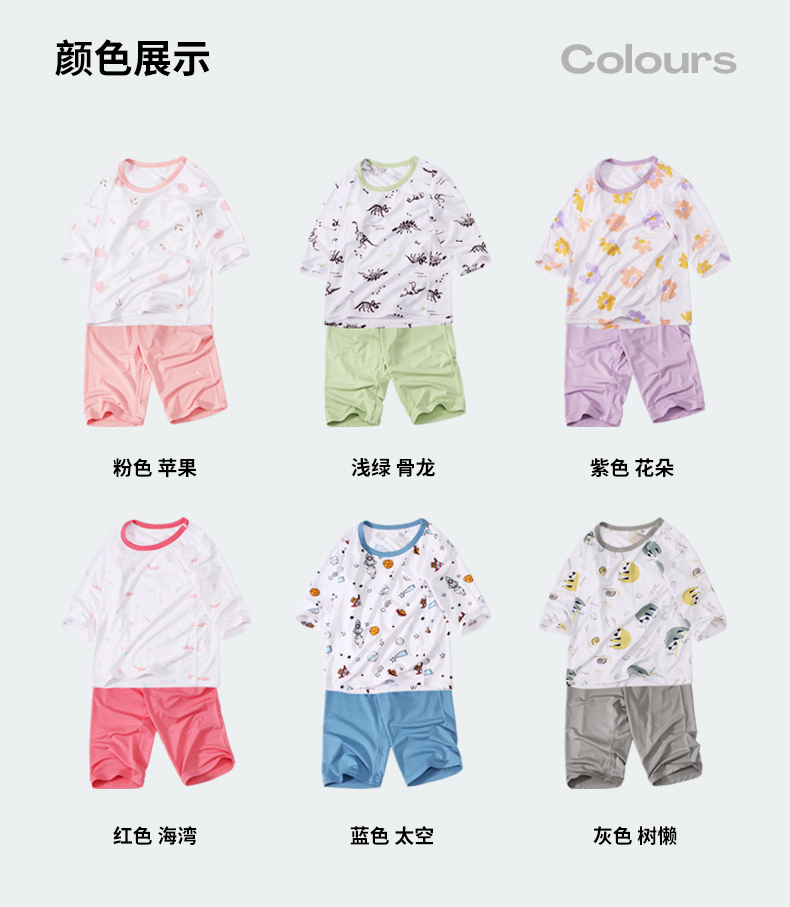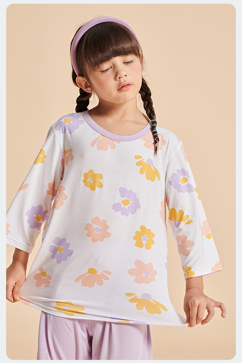 【品名】莫代尔儿童奥地利进口兰精天丝莫代尔凉感7分袖套装
