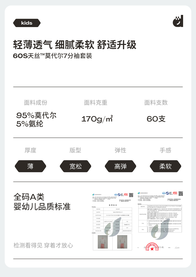 【面料】95%莫代尔+5%氨纶