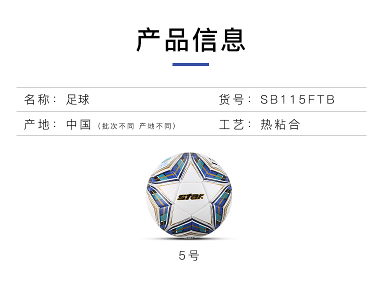 小李子STAR世达PU热粘合技术工艺运动训练比赛5号足球成人男SB115FTB
