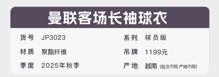 小李子阿迪达斯25/26赛季曼联球员版客场长袖球衣成人男足球服JP3023