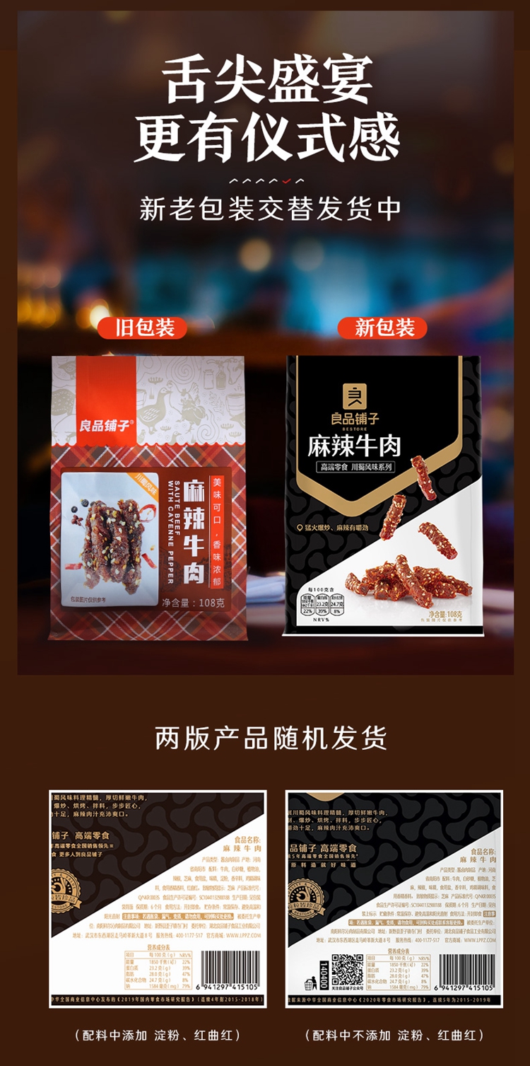【采购下架】【江城百臻】良品铺子麻辣牛肉108g/袋