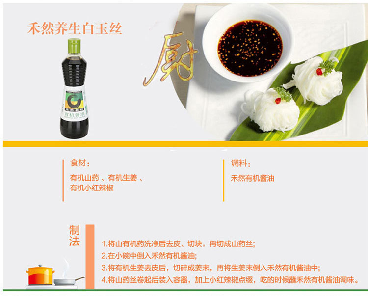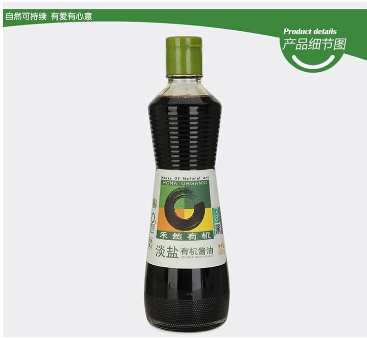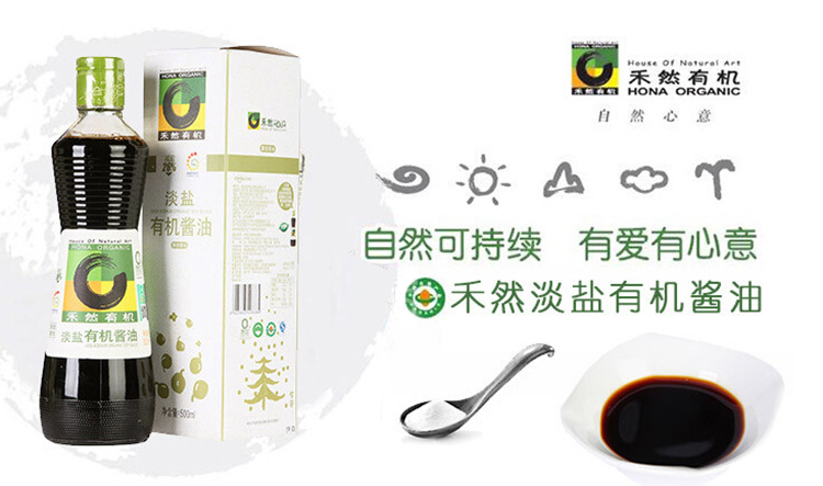 禾然淡盐有机酱油500ml <h4>1、品牌:禾然</h4> <h4>2、品名:禾然淡盐有机酱油500ml</h4> <h4>3、规格:500ml</h4> <h4>4、产地:山东 </h4> <h4>5、保质期:18个月</h4> <h4>6、配料:水、有机脱脂大豆、有机小麦、食用盐</h4> |