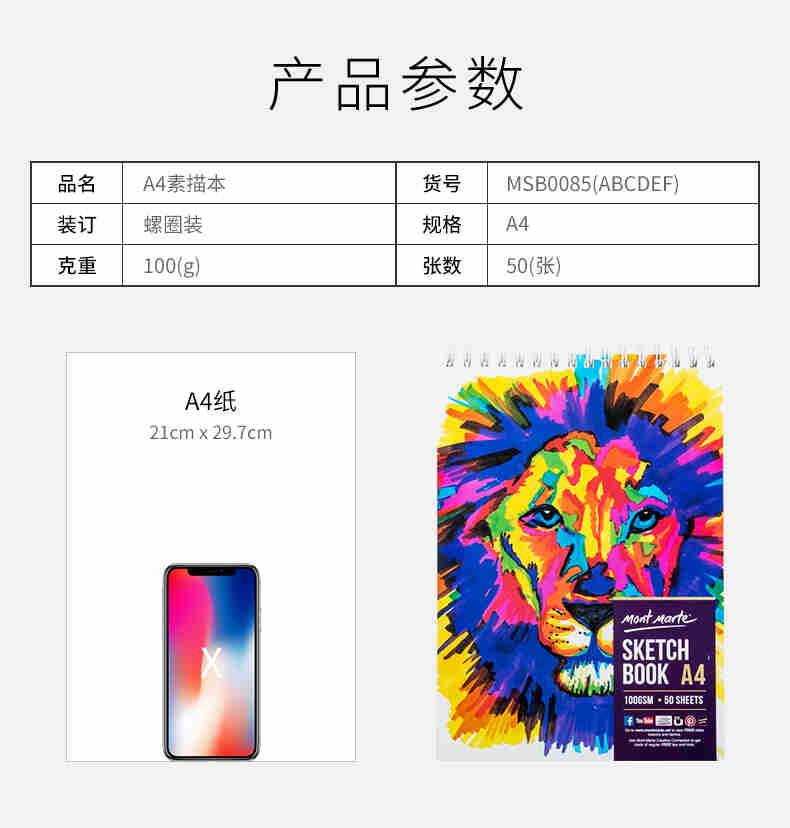 蒙玛特素描本MSB0085D狮子速写本50页彩铅空白绘画本