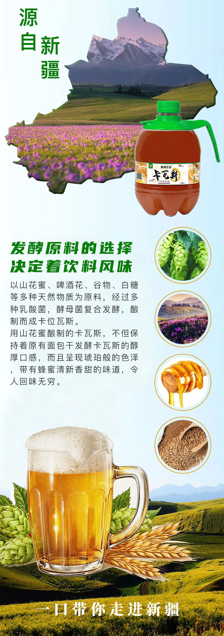 【好味饮品丨新疆卡瓦斯】 精选优质原料,经过多种乳酸菌、酵母菌复合发酵酿制而成,口感醇厚浓郁,带有蜂蜜清新香甜的味道,令人回味无穷,烧烤聚会撸串好搭子