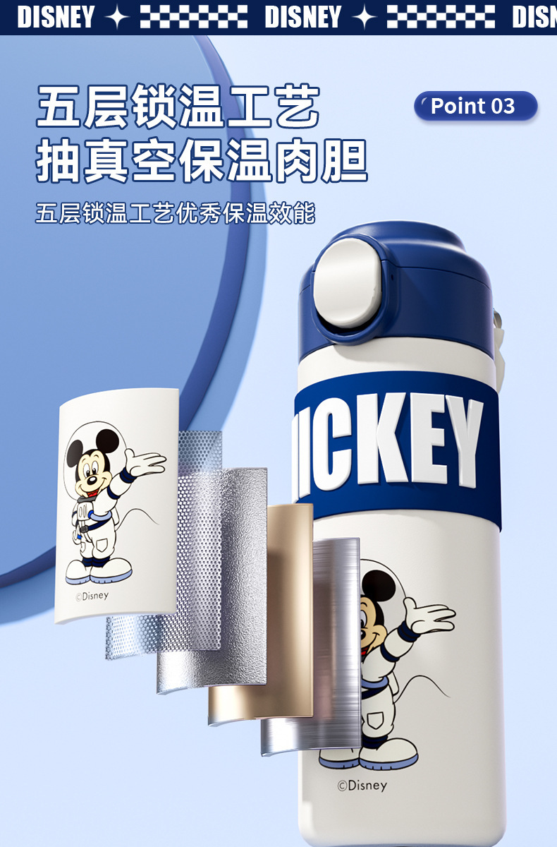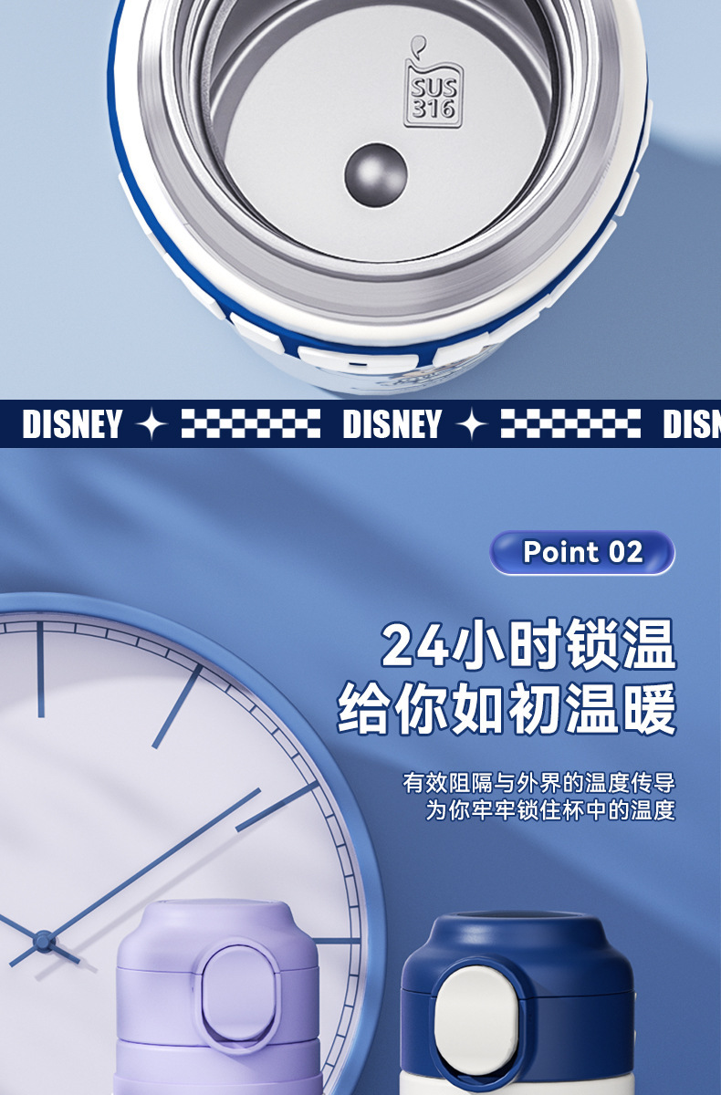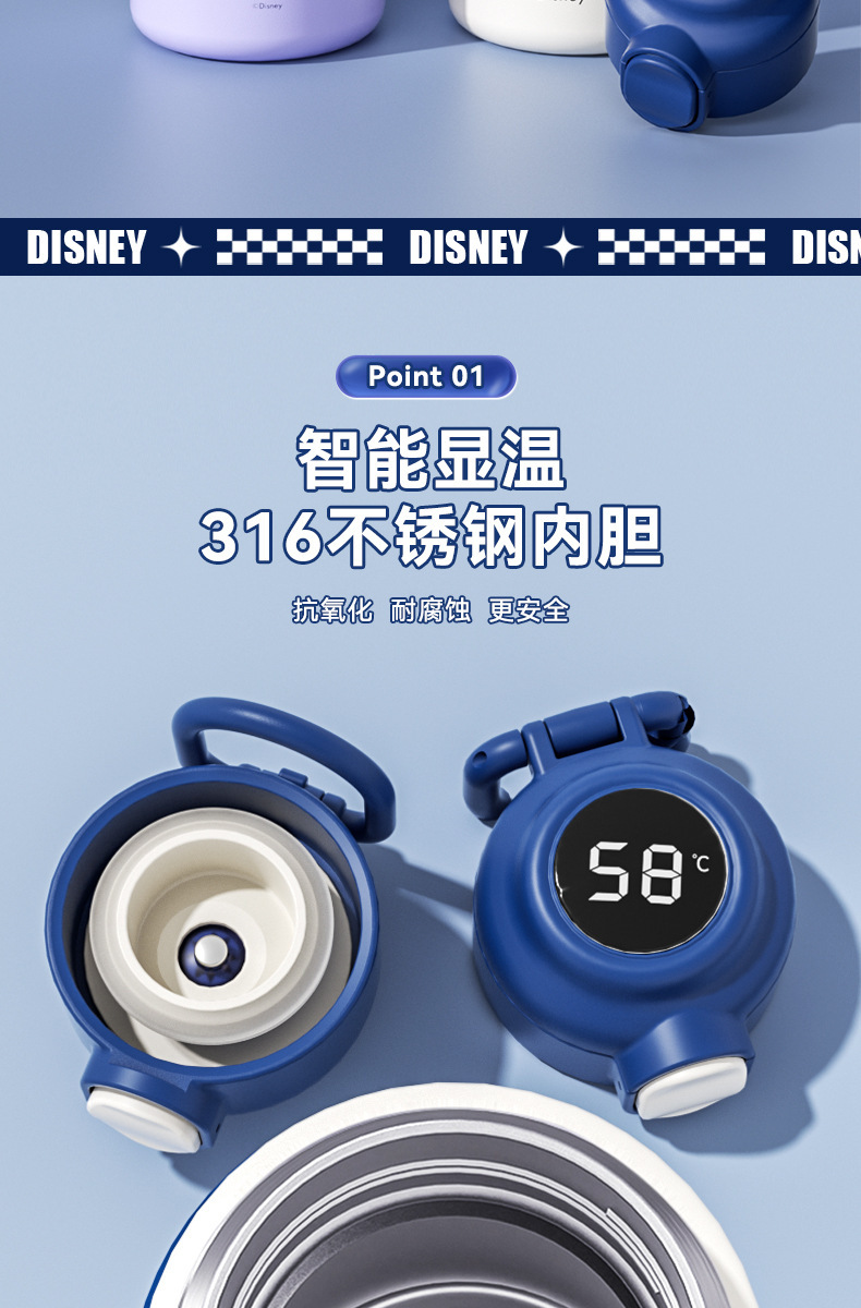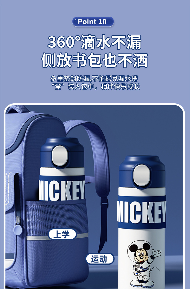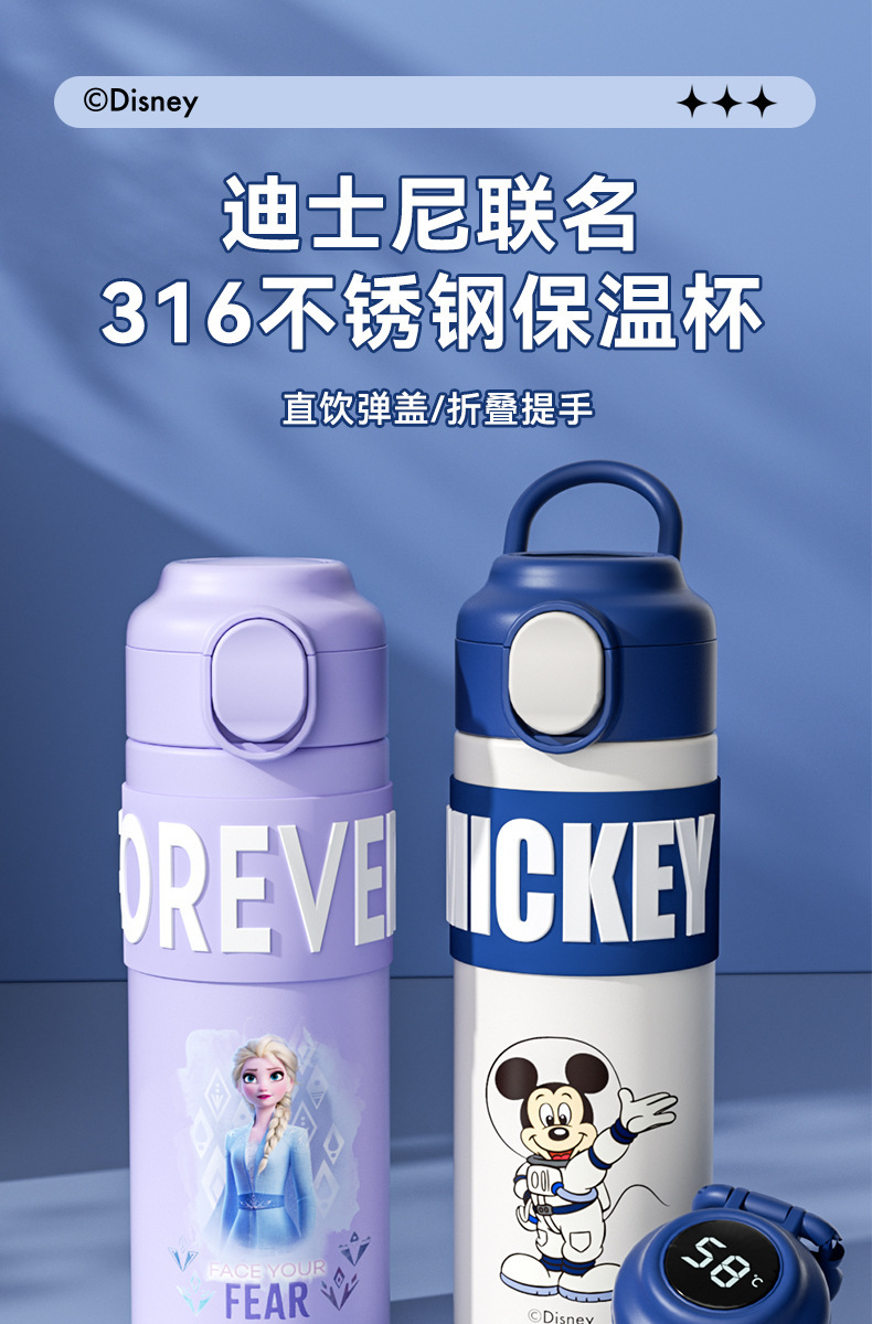 迪士尼米奇智能保温杯儿童316不锈钢小学生上学专用水壶水杯子女幼儿园开学季学生水杯