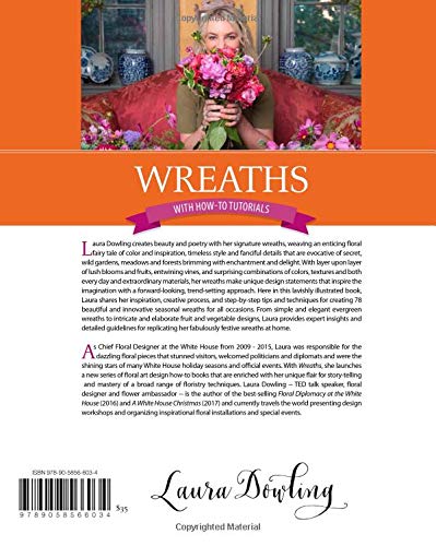 As Chief Floral Designer at the White House from 2009 - 2015, Laura was responsible for the dazzling floral pieces that stunned visitors, welcomed politicians and diplomats and were the shining stars of many White House holiday seasons and official events. With Wreaths, she launches a new series of floral art design how-to books that are enriched with her unique flair for story-telling and mastery of a broad range of floristry techniques. Laura Dowling -- TED talk speaker, floral designer and flower ambassador -- is the author of Floral Diplomacy at the White House (2016) and A White House Christmas (2017) and currently travels the world presenting design workshops and organizing inspirational floral installations and special events."