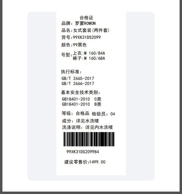 面料:100%聚酯纤维 (粘合衬除外) 里料:100%聚酯纤维