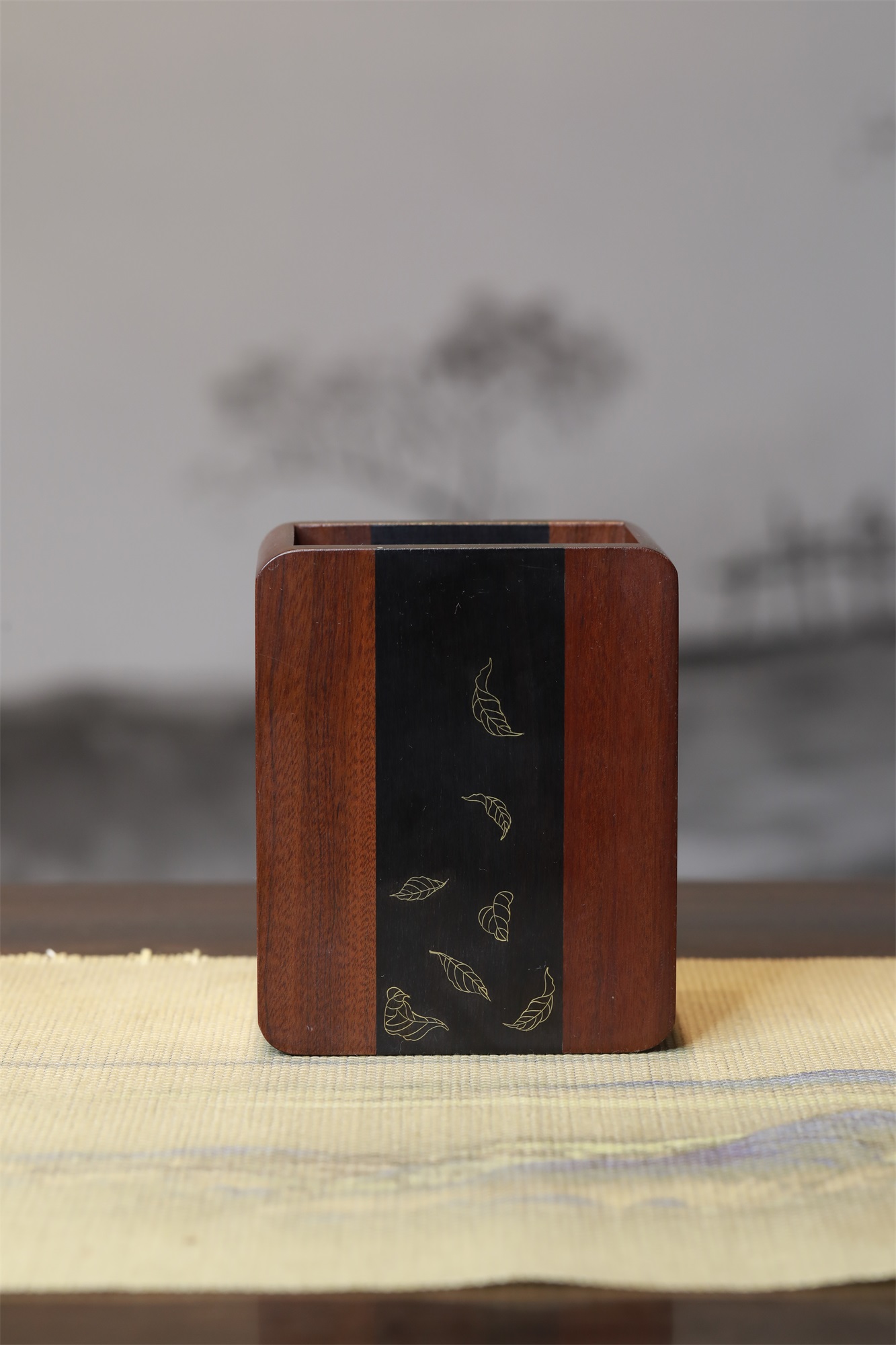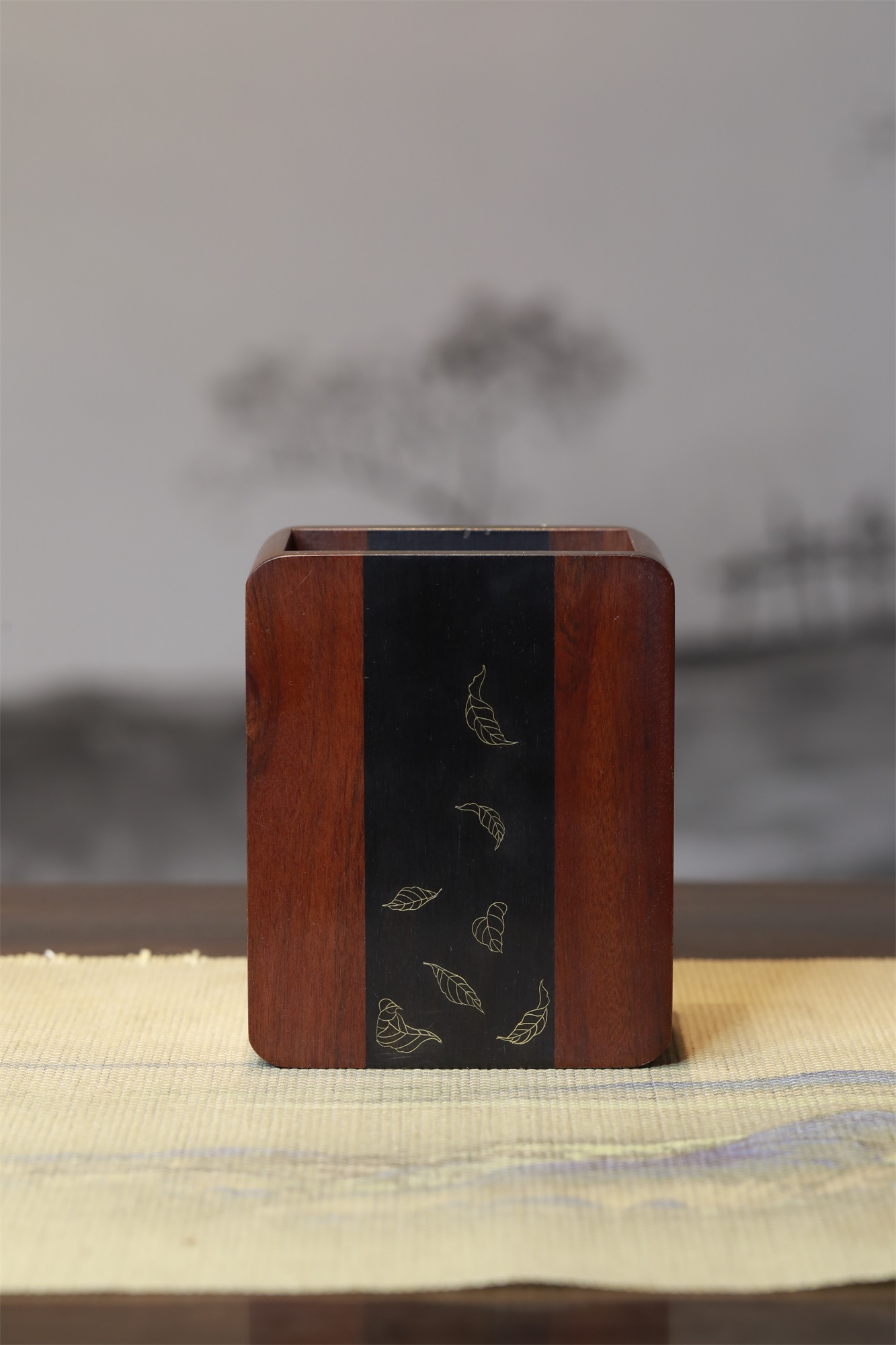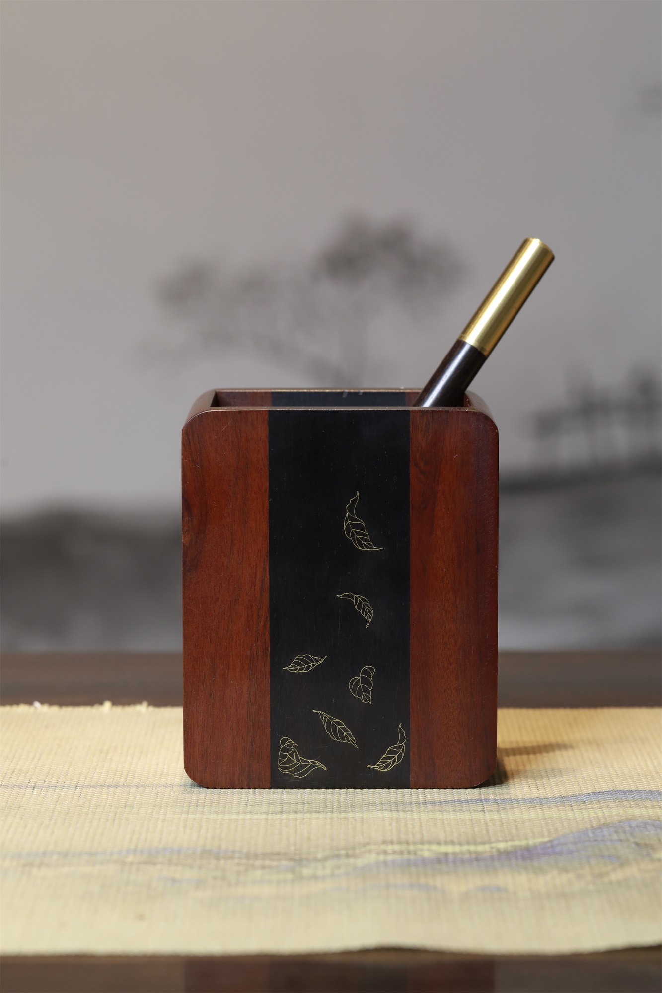树叶°酸枝笔筒