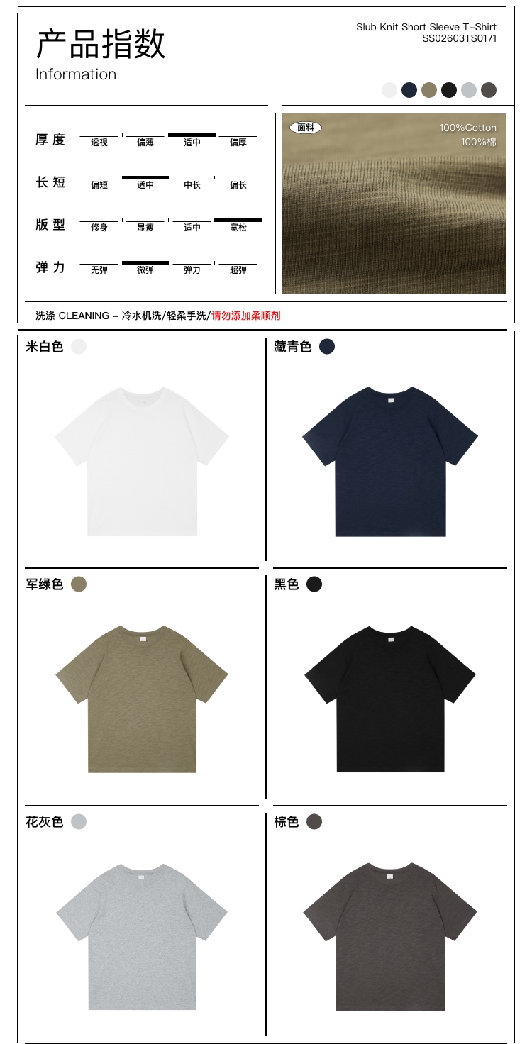Oneup竹节短袖T恤