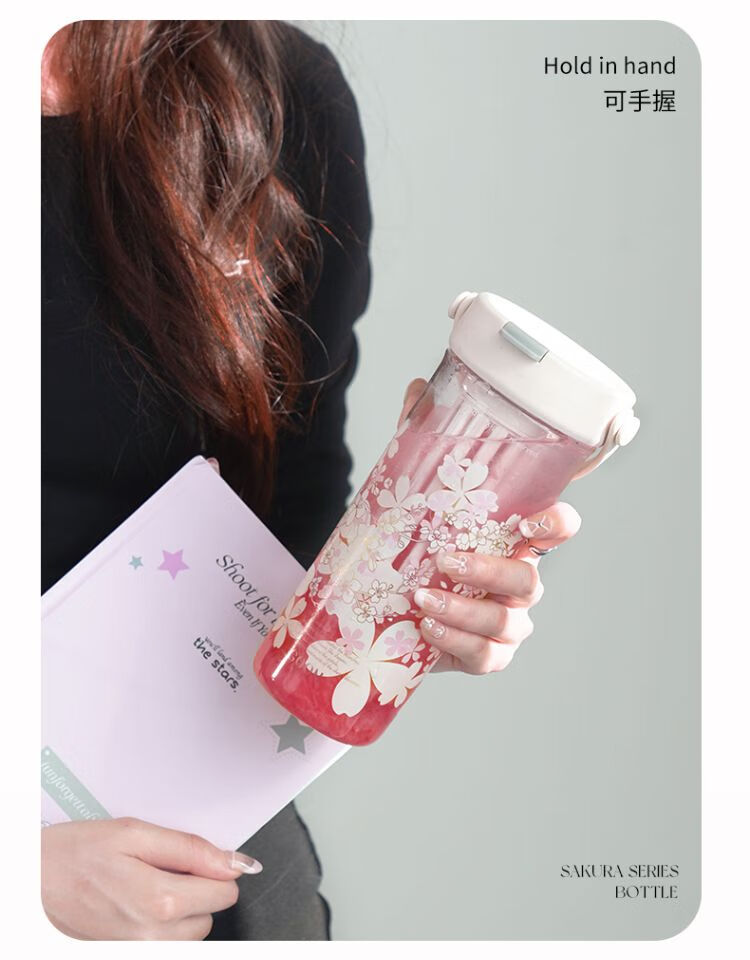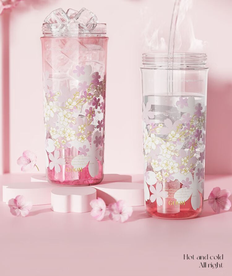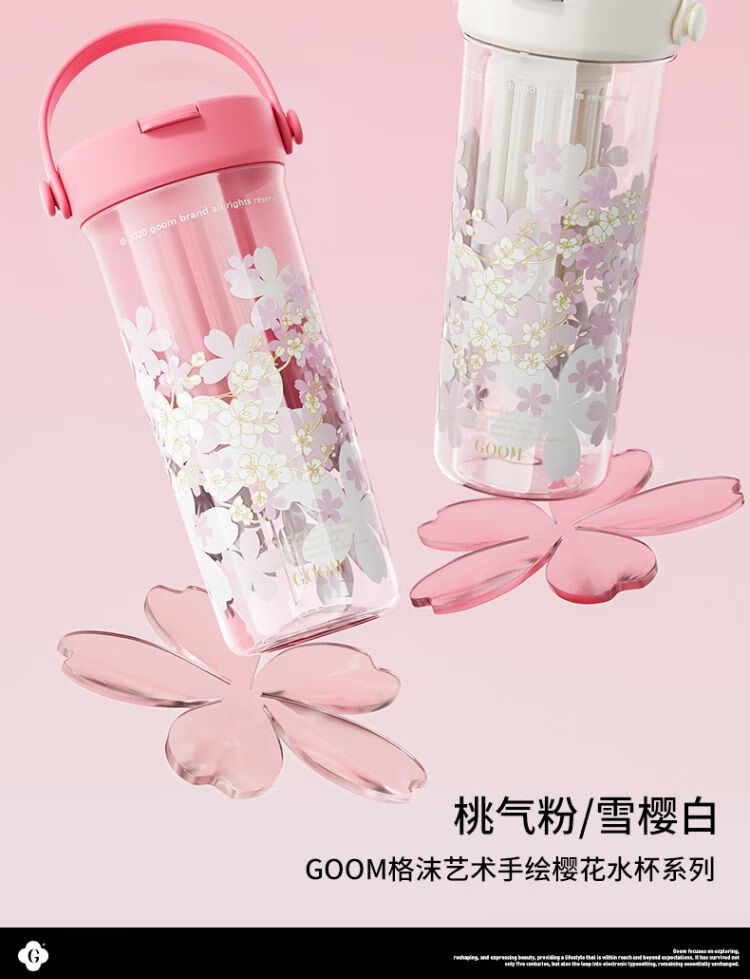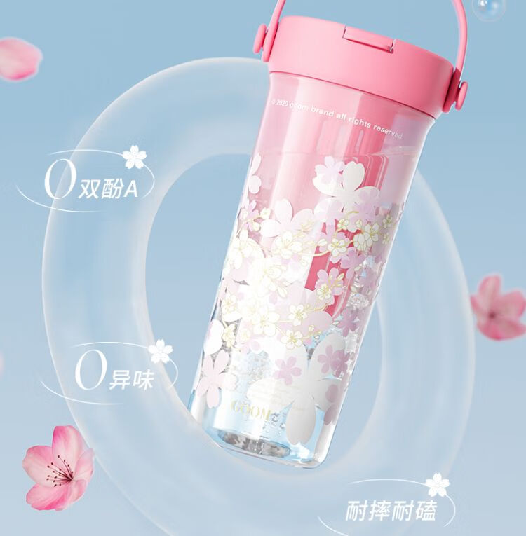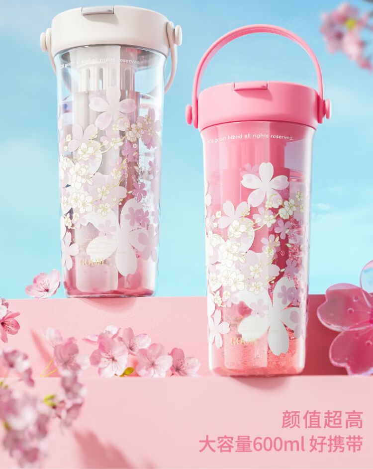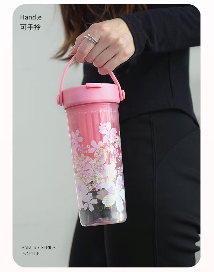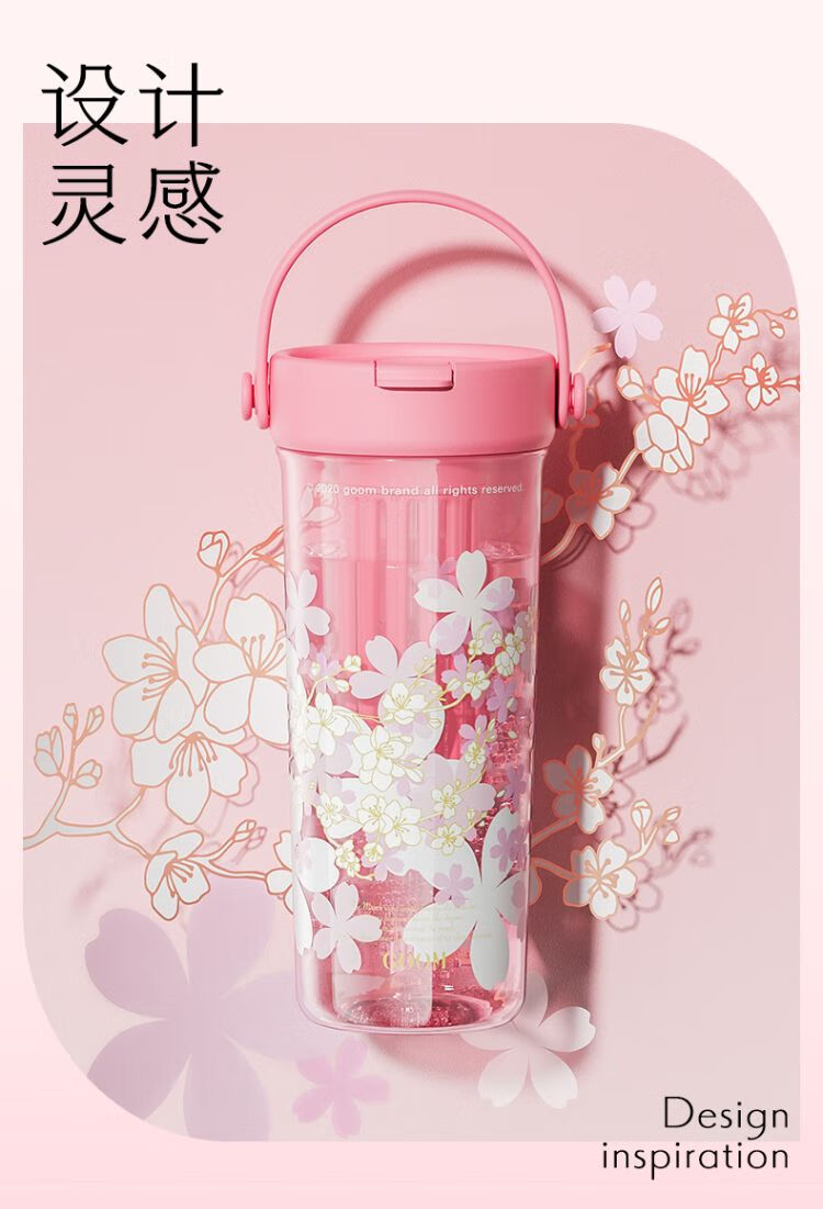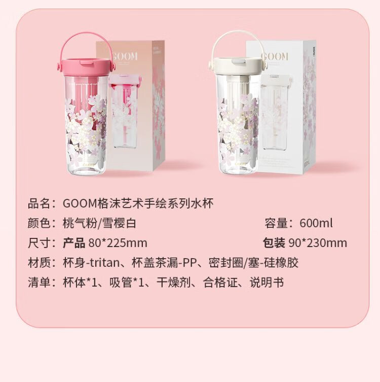 GOOM手绘杯大容量手提吸管杯高颜值塑料杯 600ml繁花/个