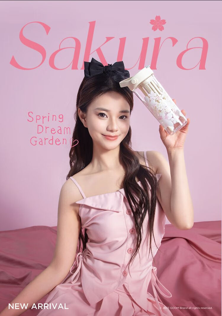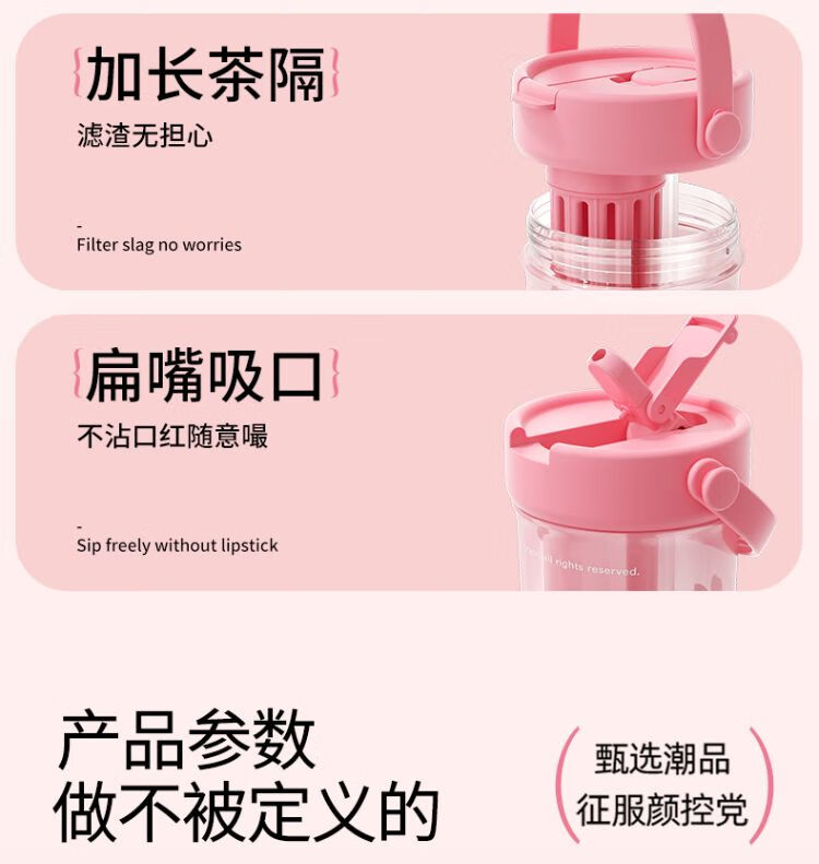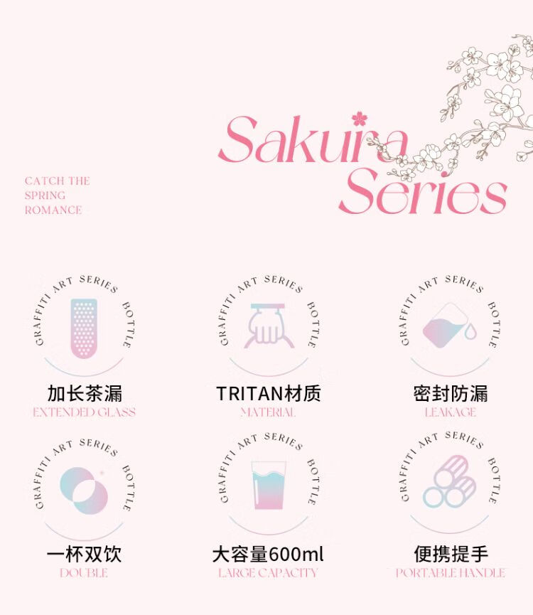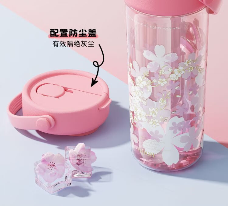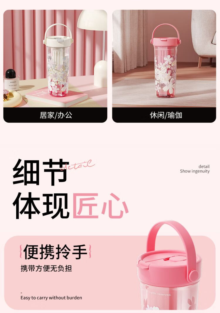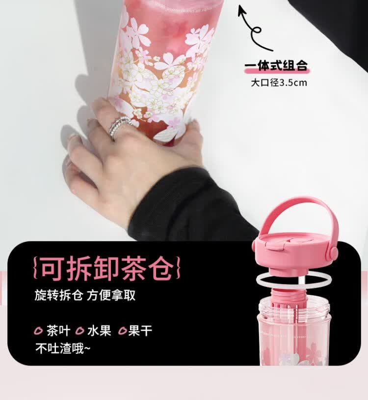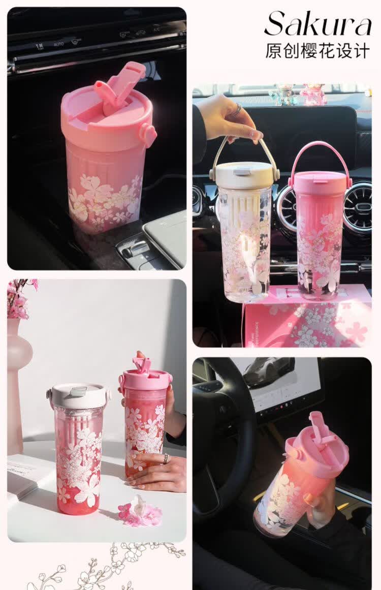 GOOM手绘杯大容量手提吸管杯高颜值塑料杯 600ml繁花/个