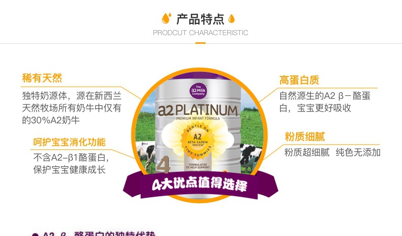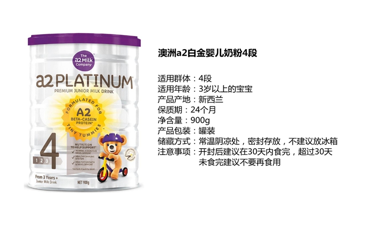 澳洲 A2 白金装婴儿奶粉4段 900克 两罐装