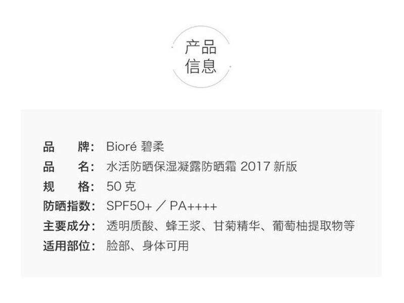 碧柔 水活防晒保湿凝蜜SPF50 50g