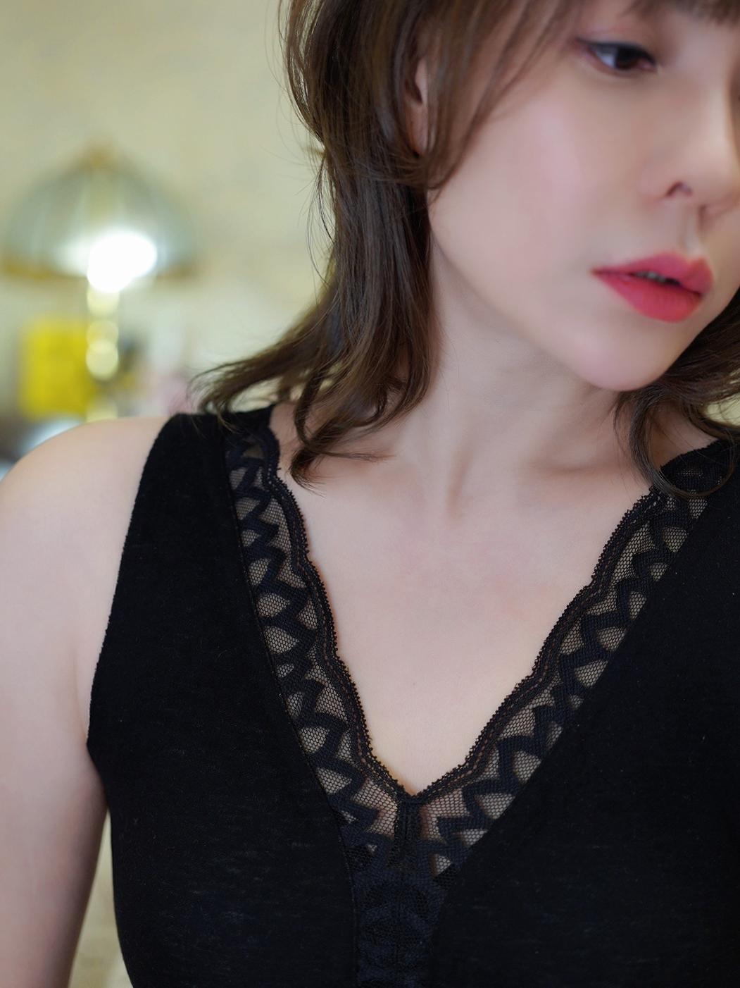 V字领口镶嵌了一片美丽的蕾丝,若隐若现透出肌肤,具有古典优雅的女人味。
