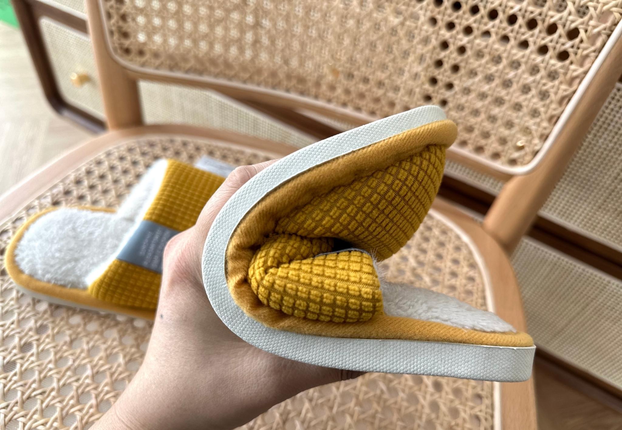 这款拖鞋的内里是加密的短毛绒,摸着非常柔软