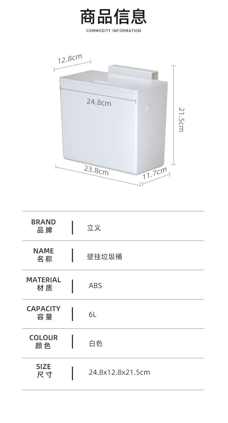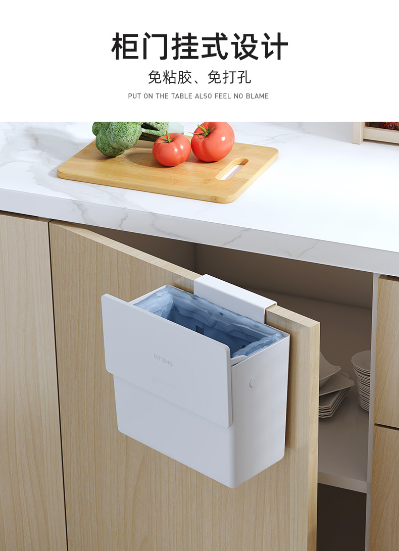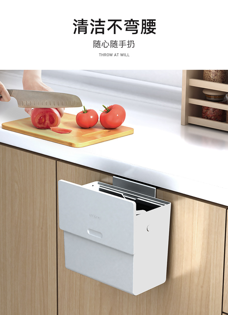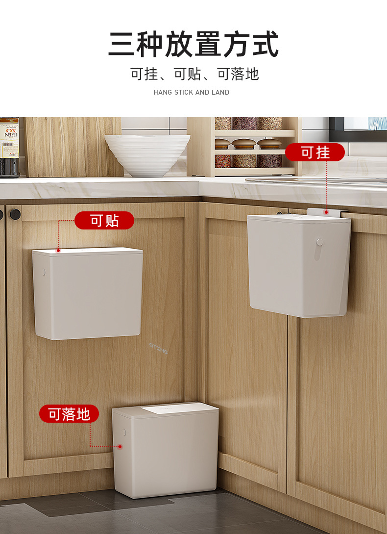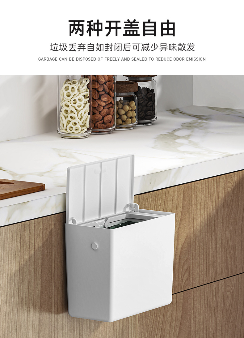 【高品质厨房垃圾桶】厨房垃圾桶家用壁挂式免打孔垃圾筒带盖厕所卫生间客厅厨余 收纳桶