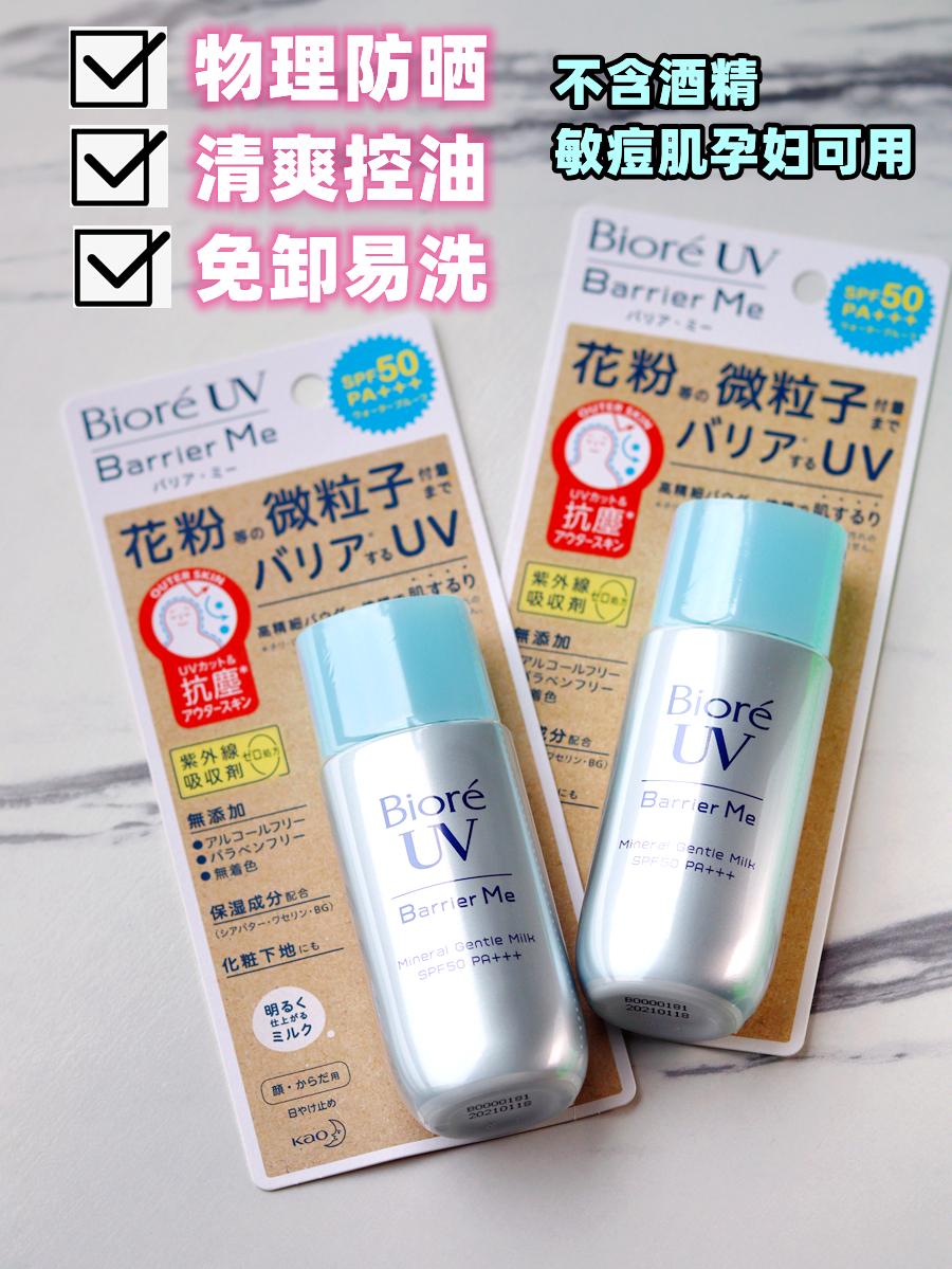 碧柔Biore抗UV物理防水控油防晒乳霜免卸无酒精 碧柔防晒硬管90ml