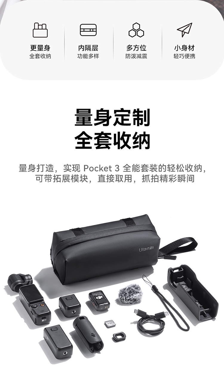Ulanzi优篮子 PK04运动相机收纳包适用于大疆Osmo Pocket3收纳包灵眸口袋云台相机包单机收纳盒便携出行包