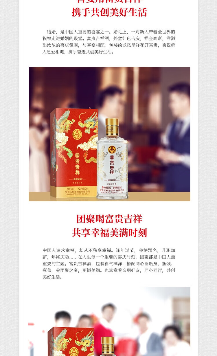 【自营】五粮液股份 富贵吉祥柔和精制 52度500ml*6瓶固态法浓香型纯粮食白酒 (每瓶配俩酒杯)H