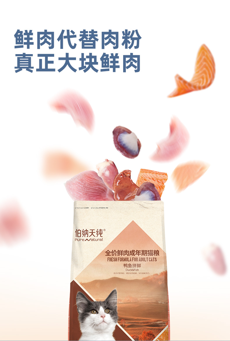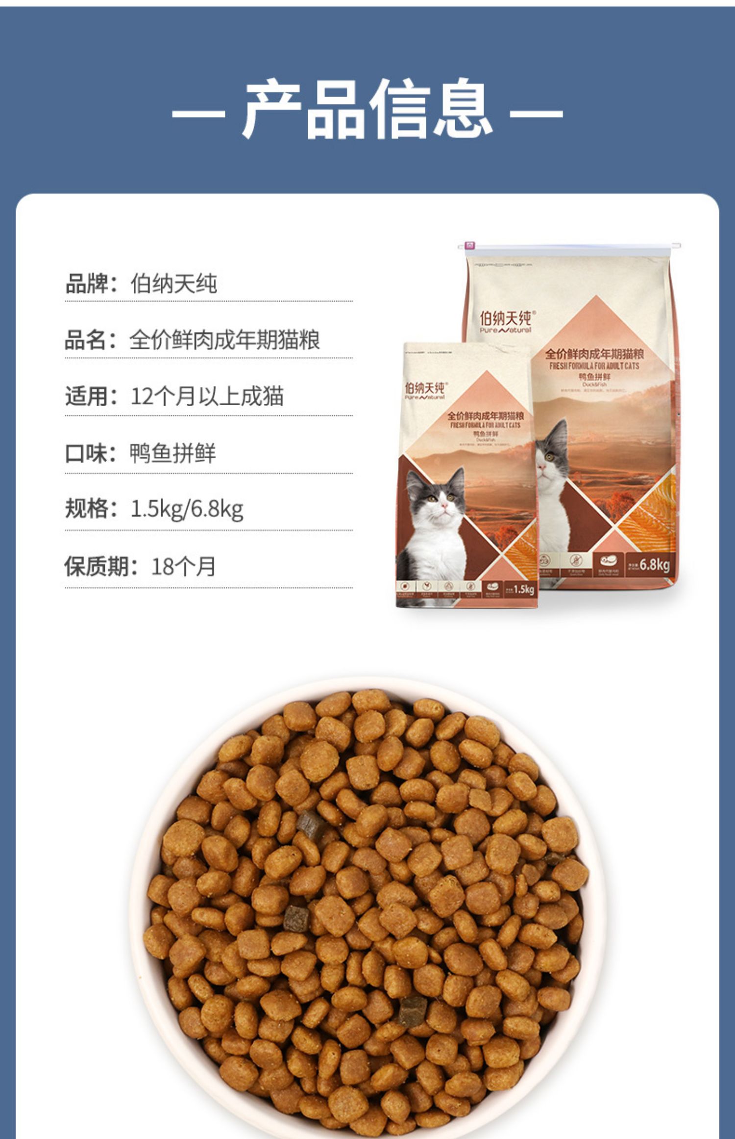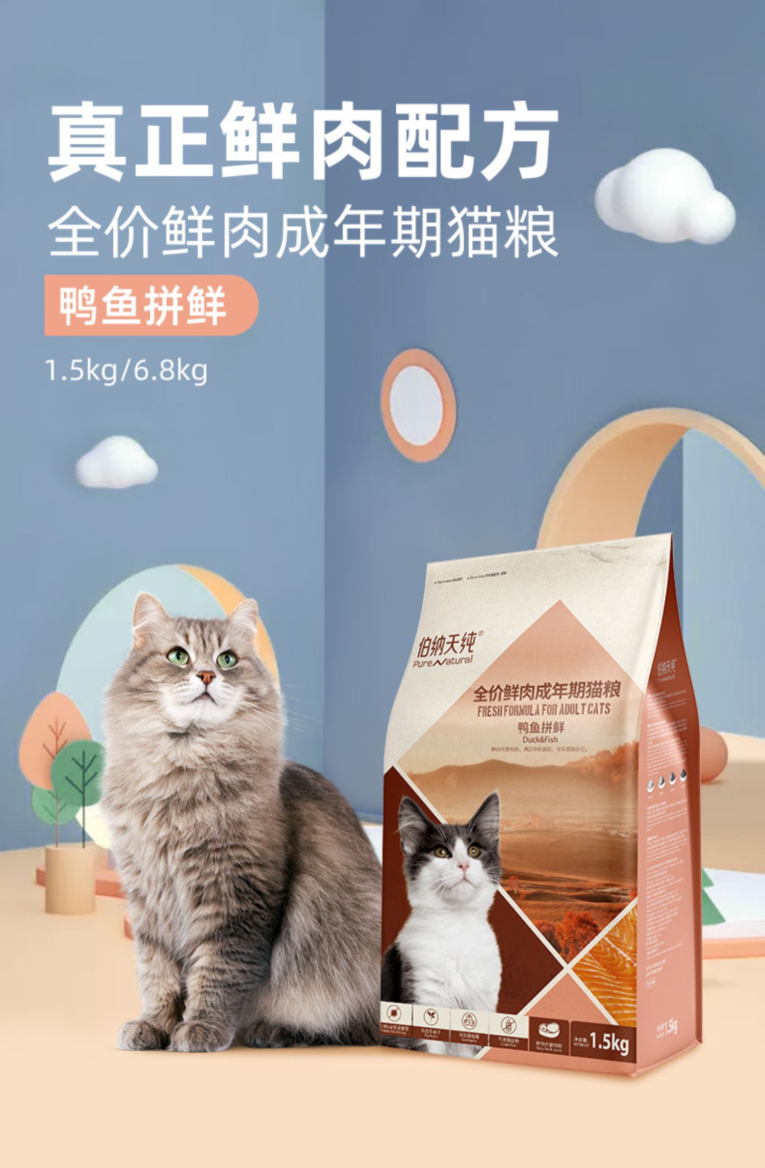 【鲜肉系列】伯纳天纯鲜肉成猫专用猫粮鸭鱼拼鲜全价成猫专用祛除毛球健康泌尿