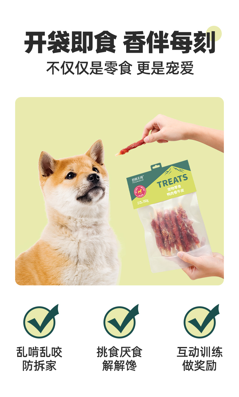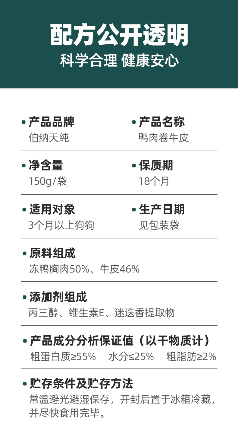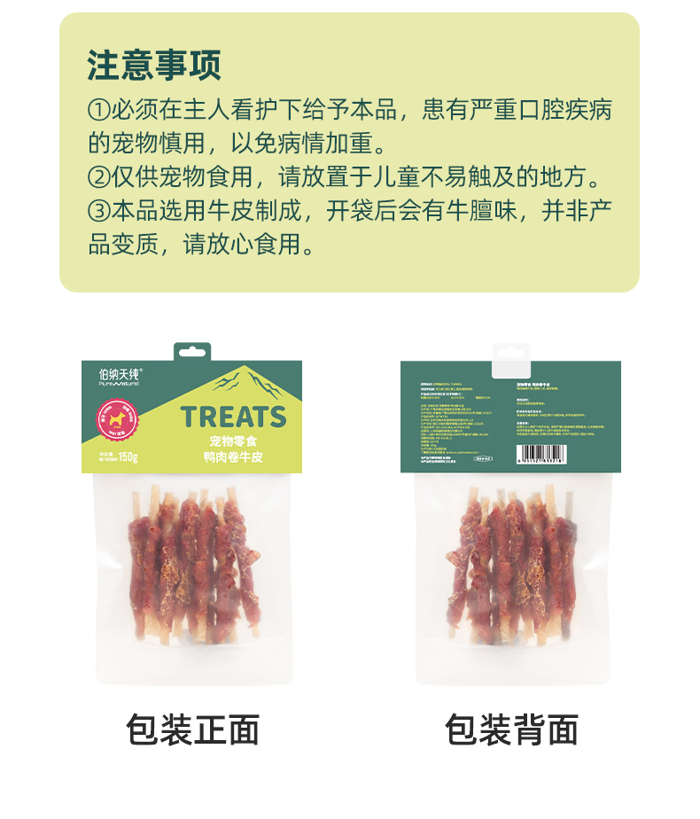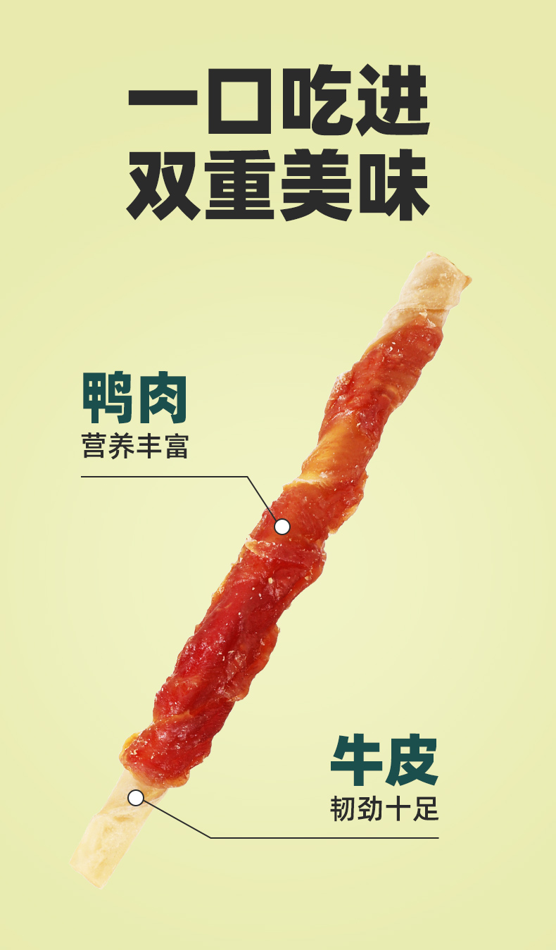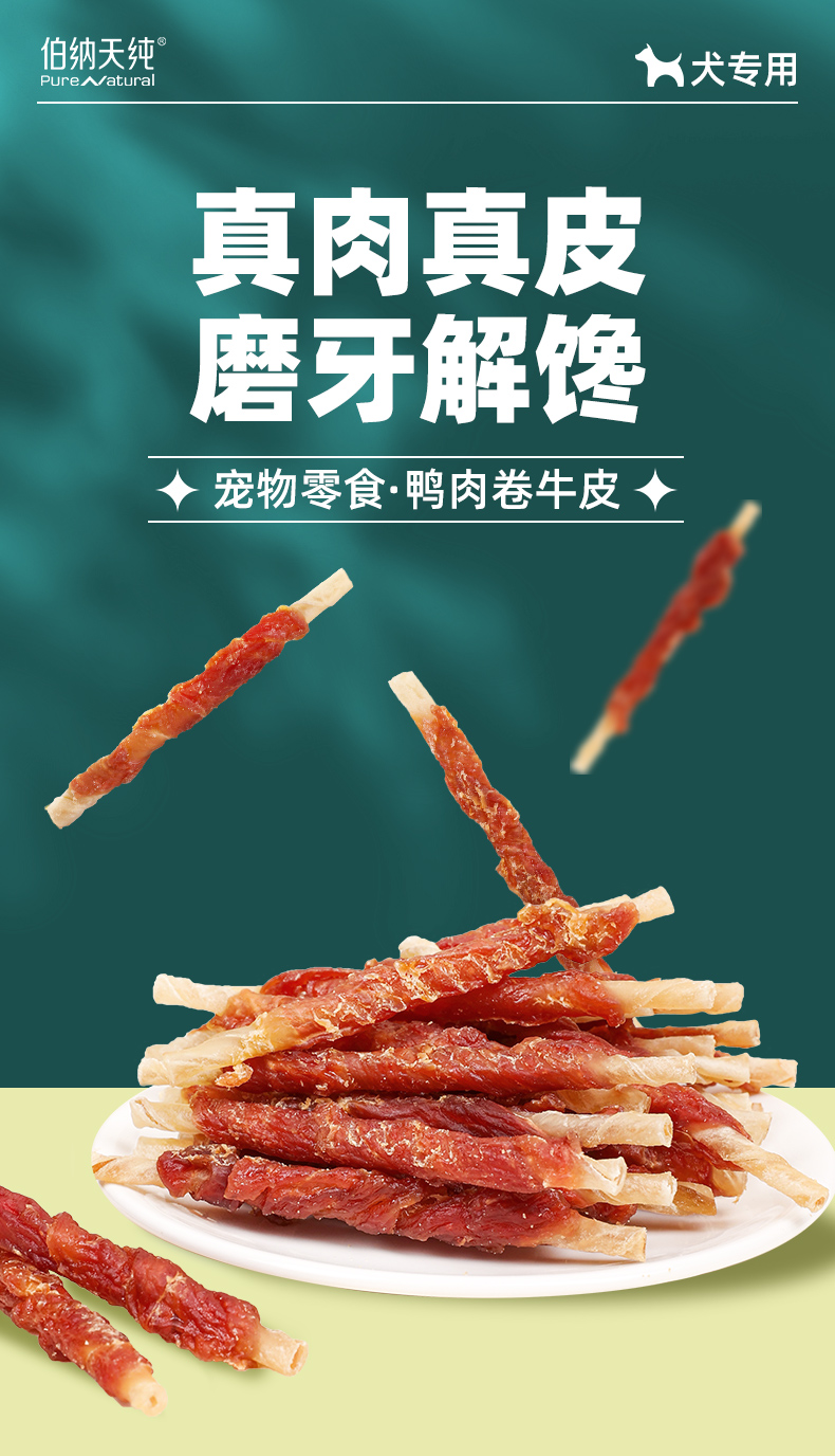 伯纳天纯宠物零食鸭肉卷牛皮狗狗磨牙棒小型犬成幼犬通用洁齿骨头