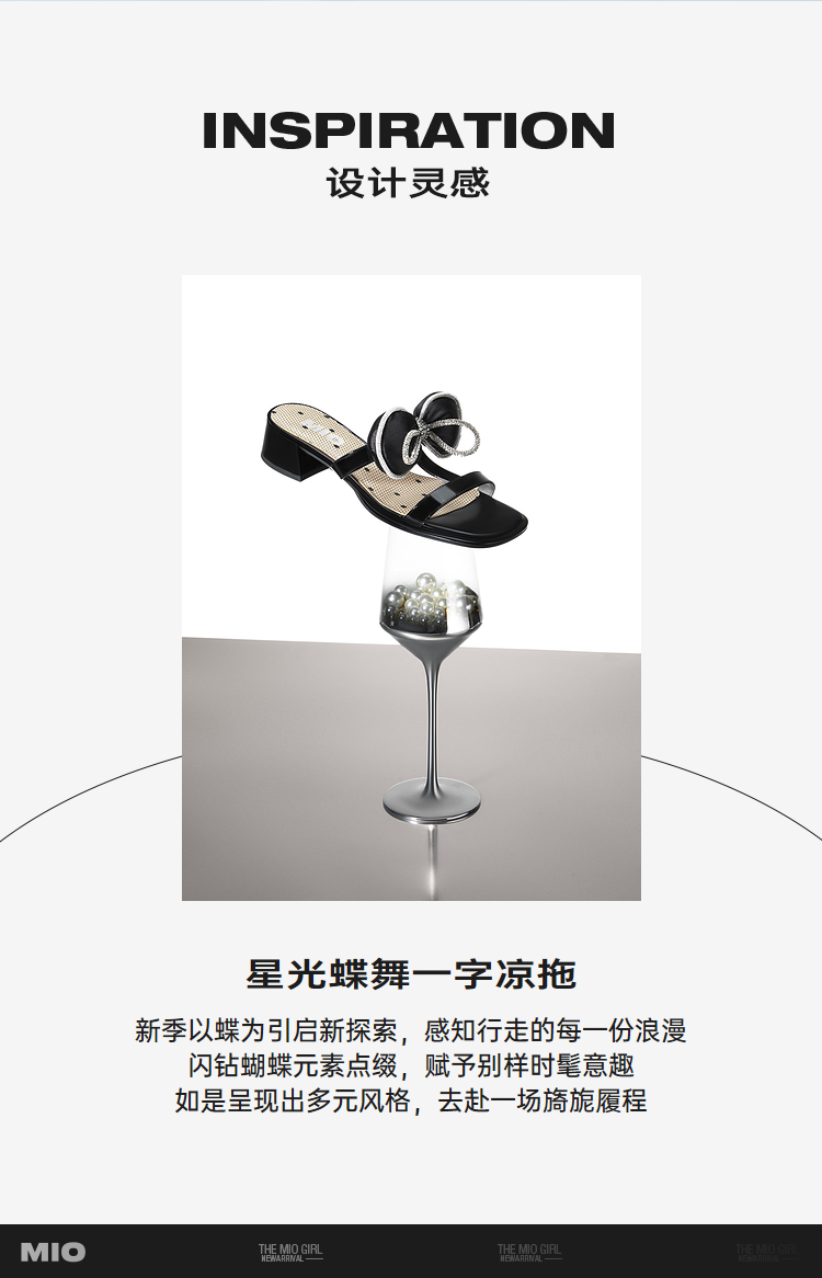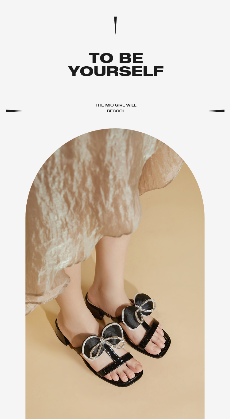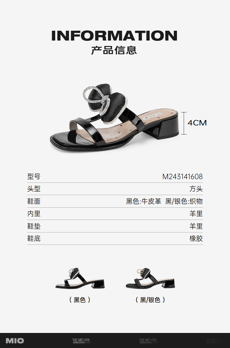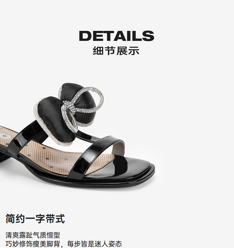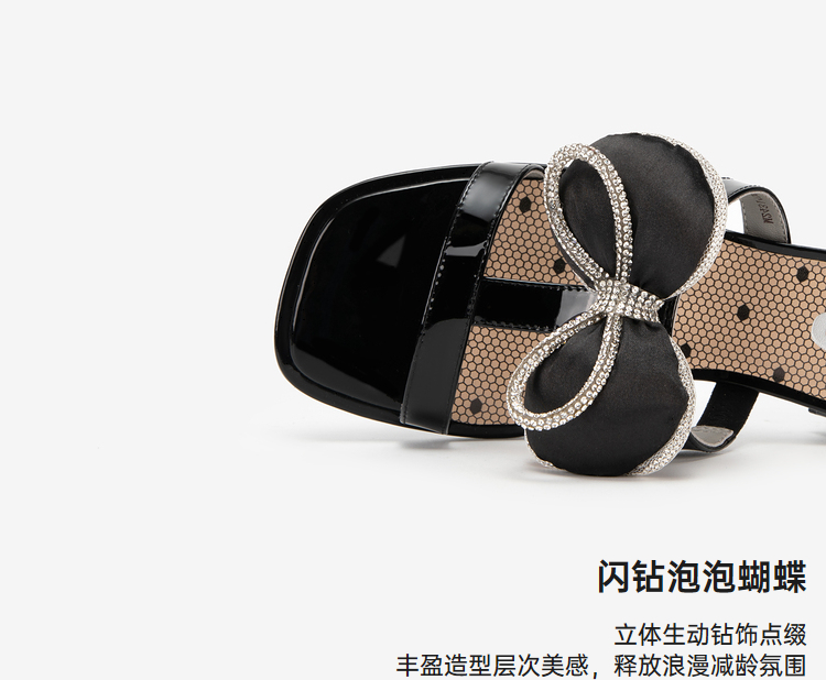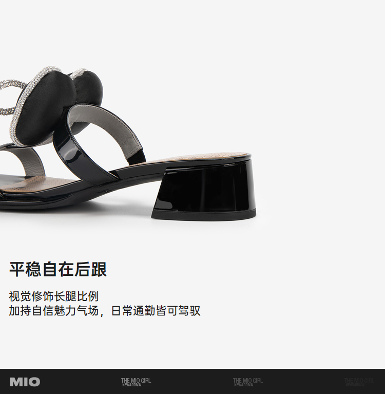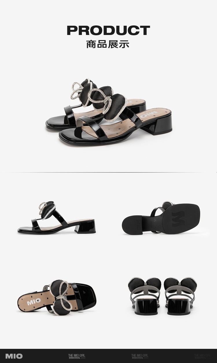 MIO米奥夏季方头中跟简约一字带式泡泡蝴蝶清爽通勤凉拖女M243141608