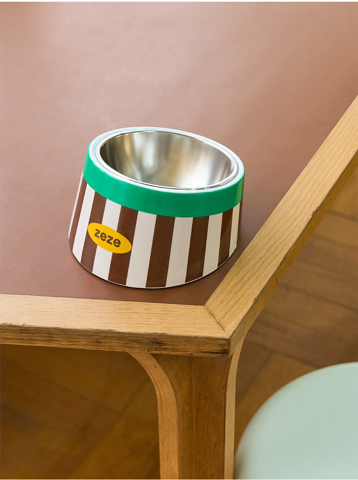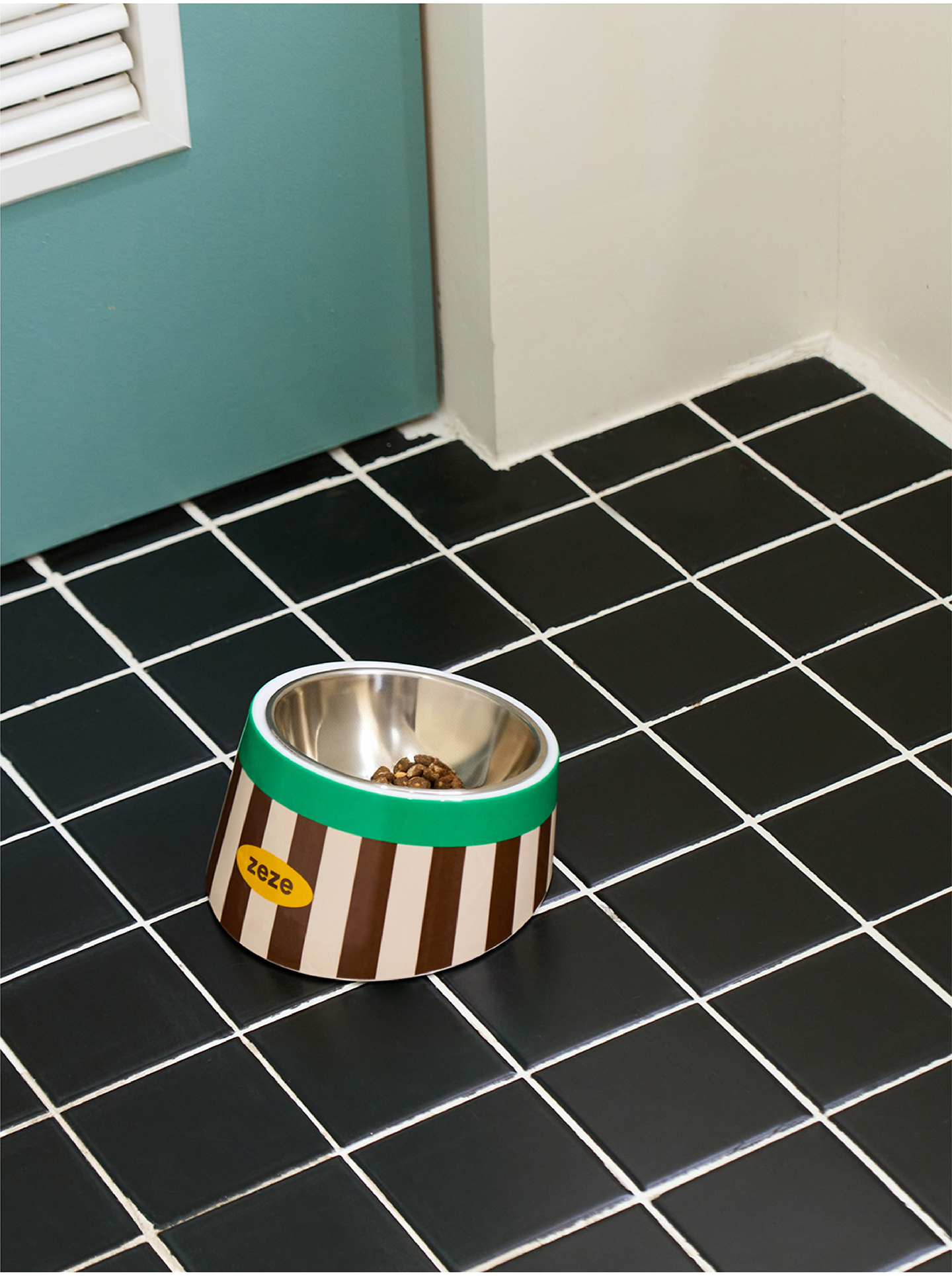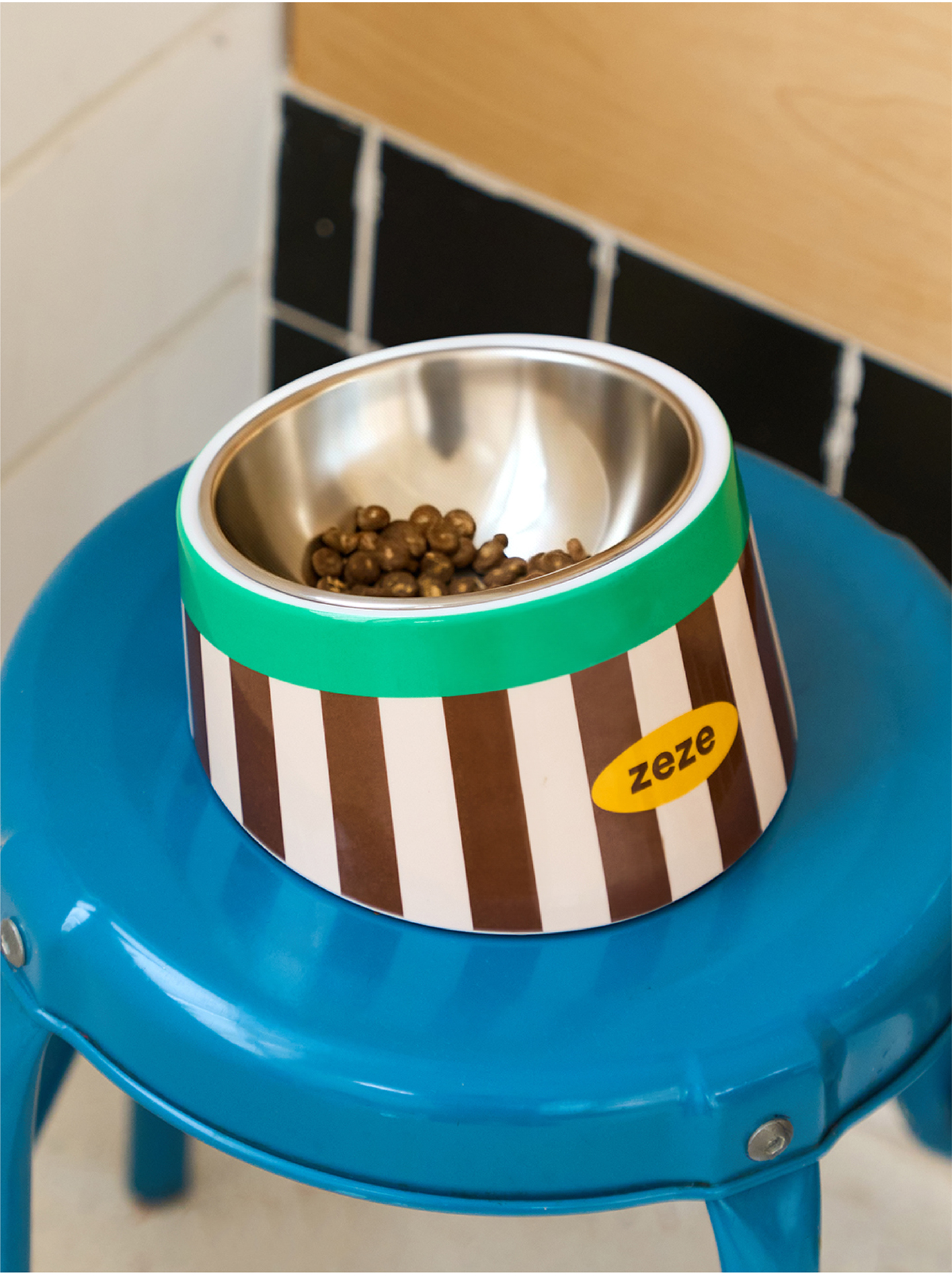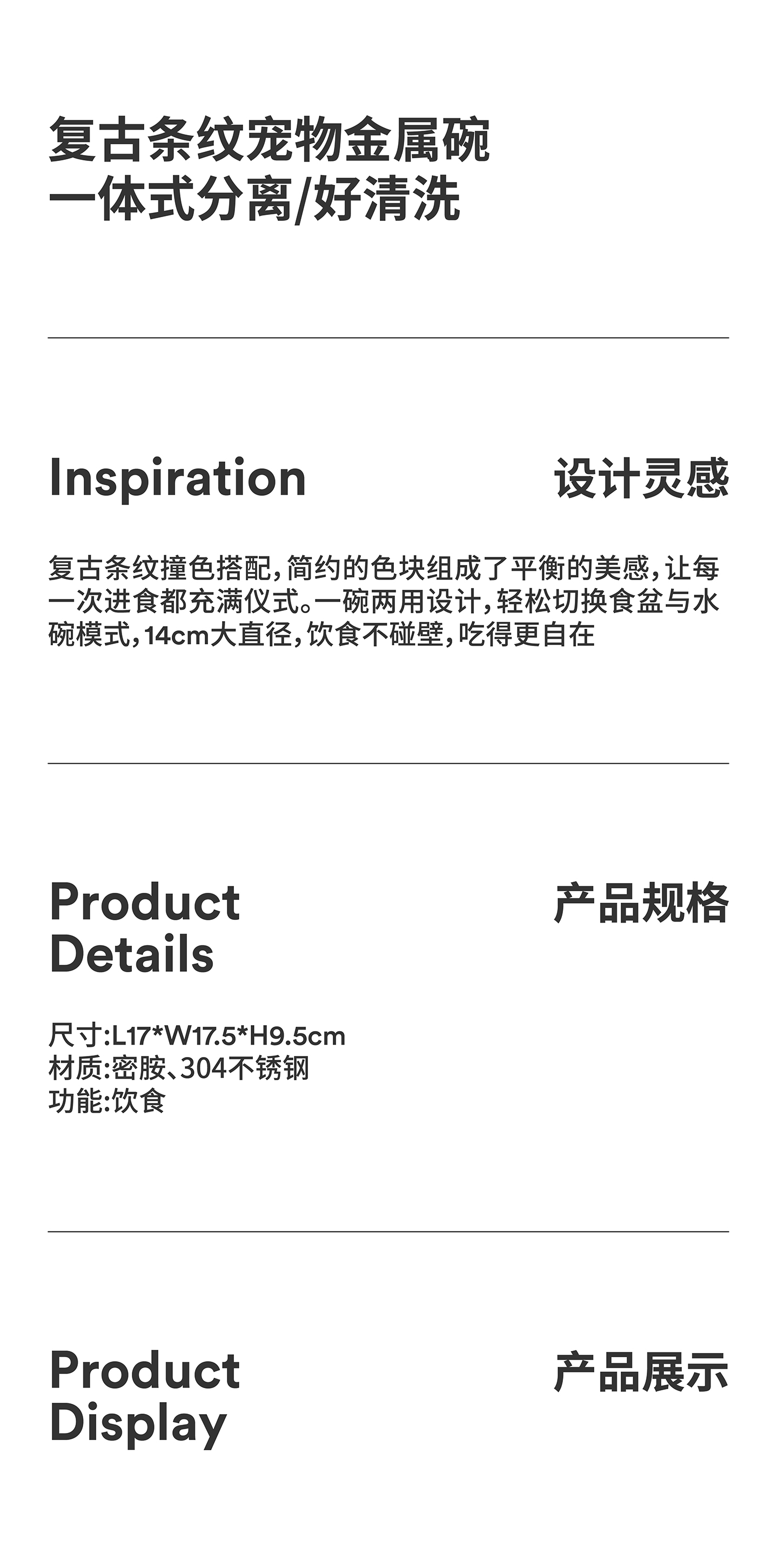 zeze复古甜心条纹波纹宠物金属碗-B
