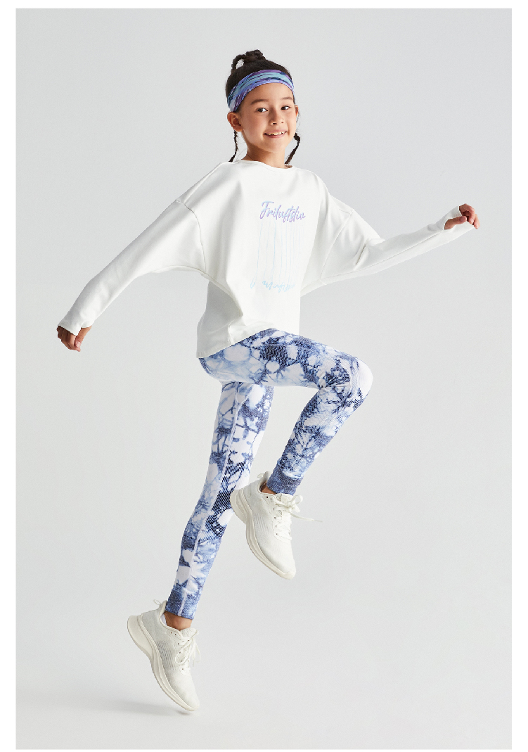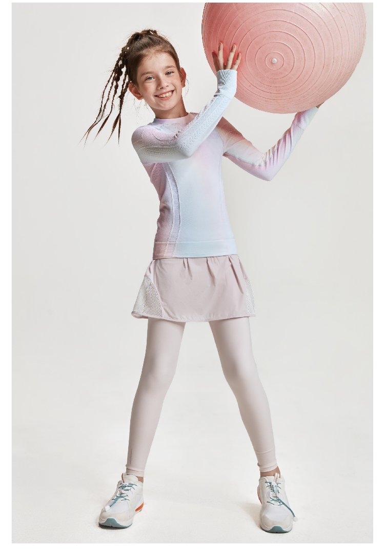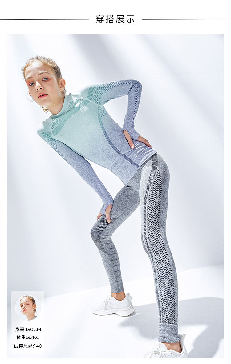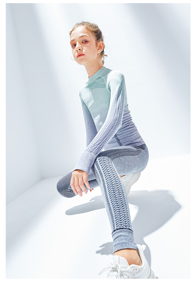 moodytiger女童长袖T恤套装一体织渐变色修身针织打底裤 M12210115