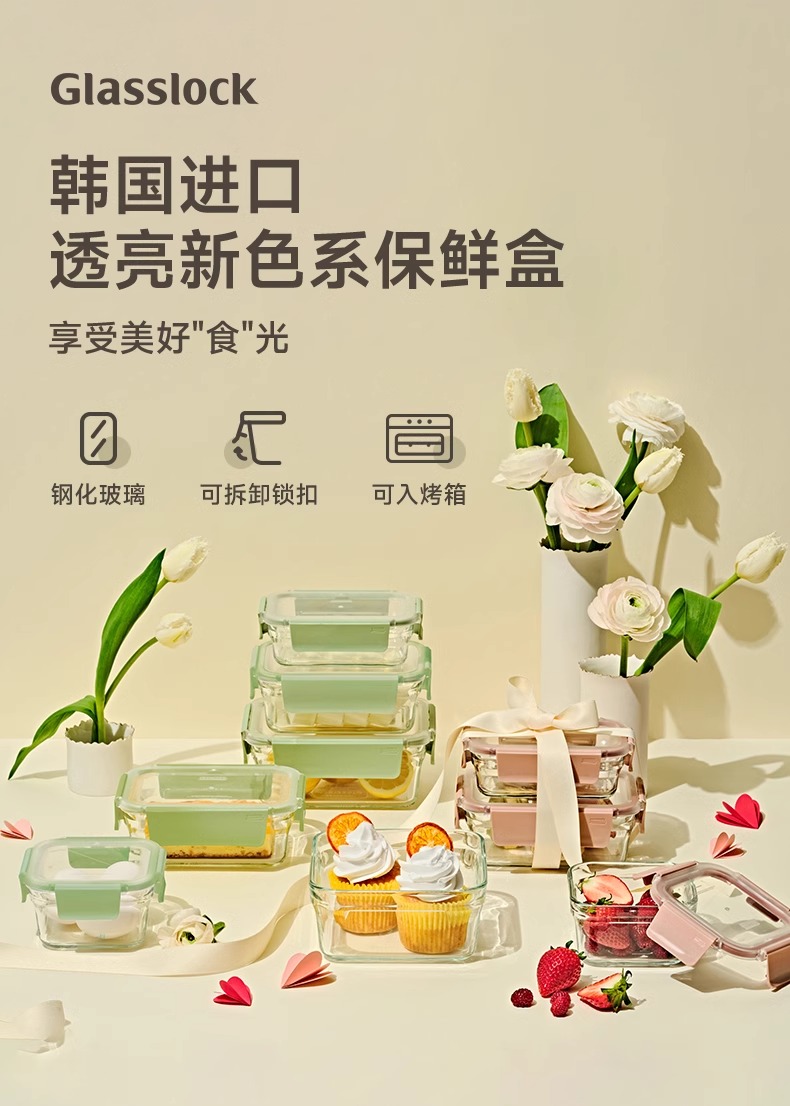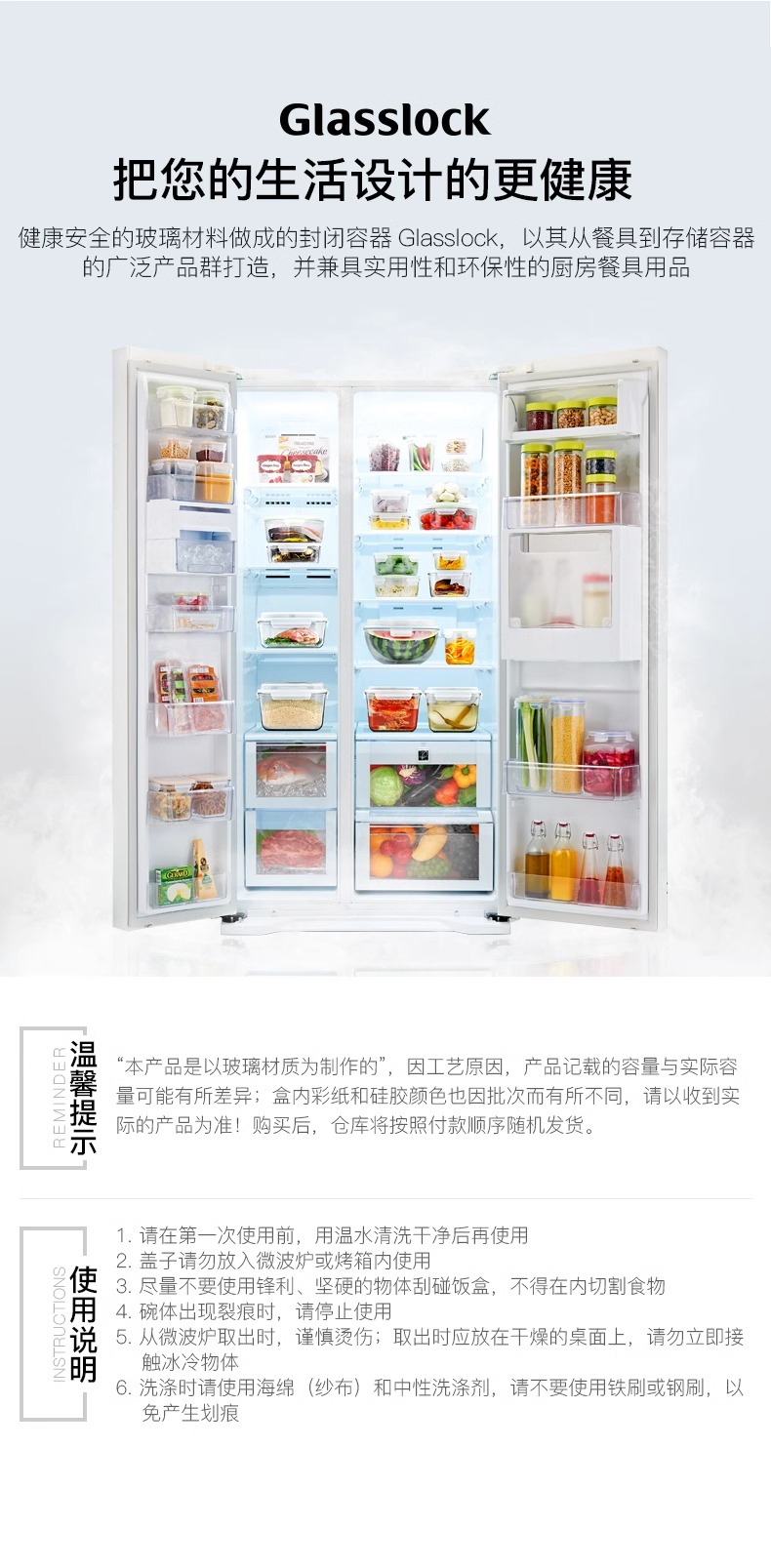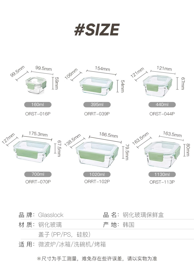 ORRT-102 glasslock玻璃正方保鲜盒1020ml(粉色)