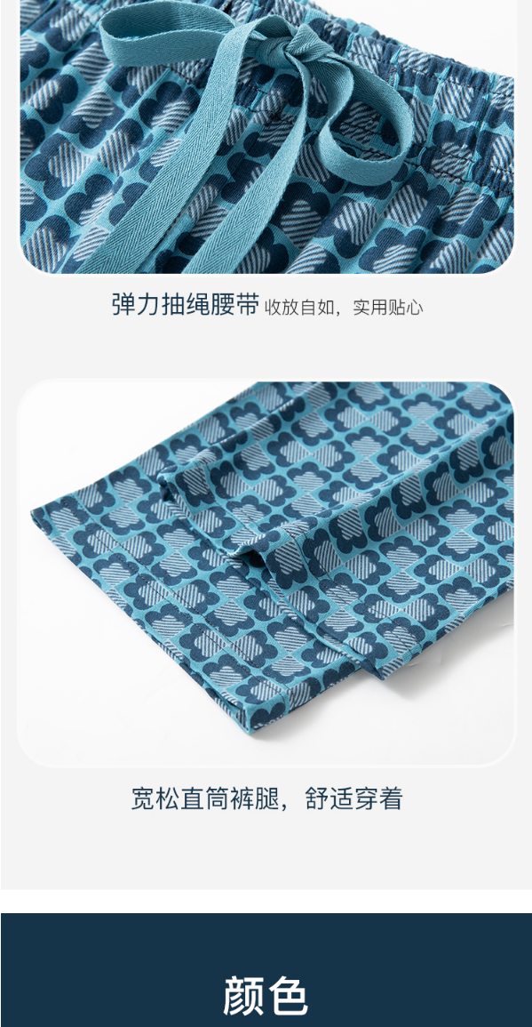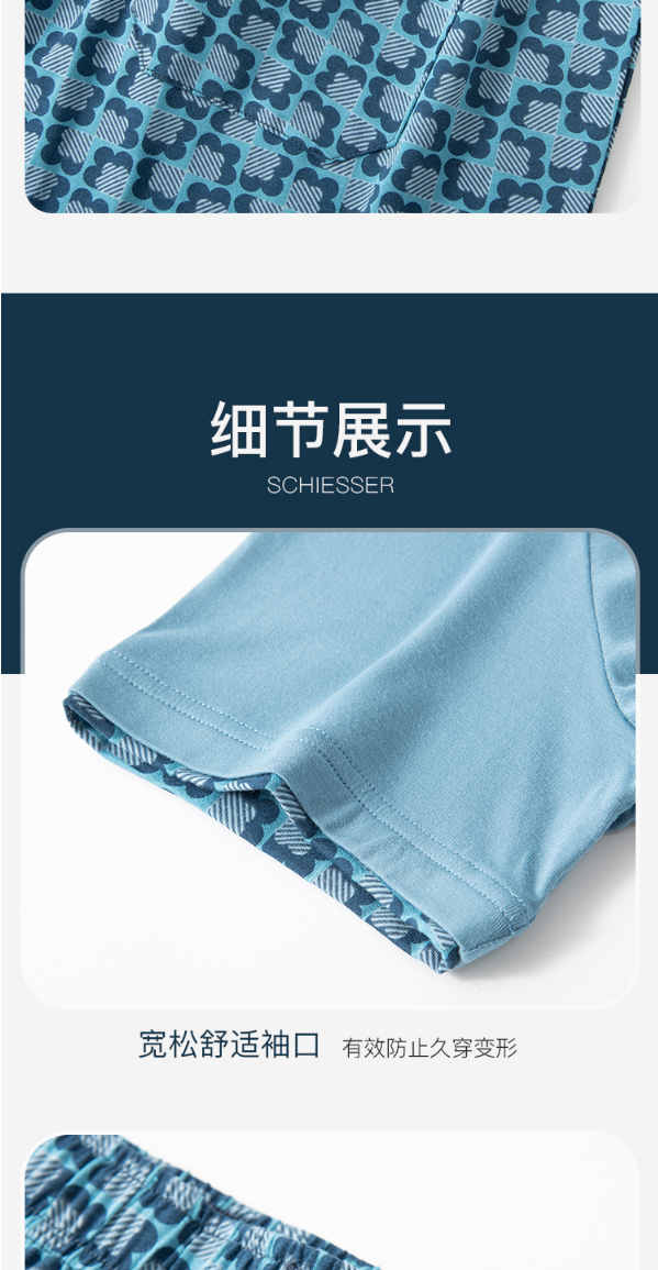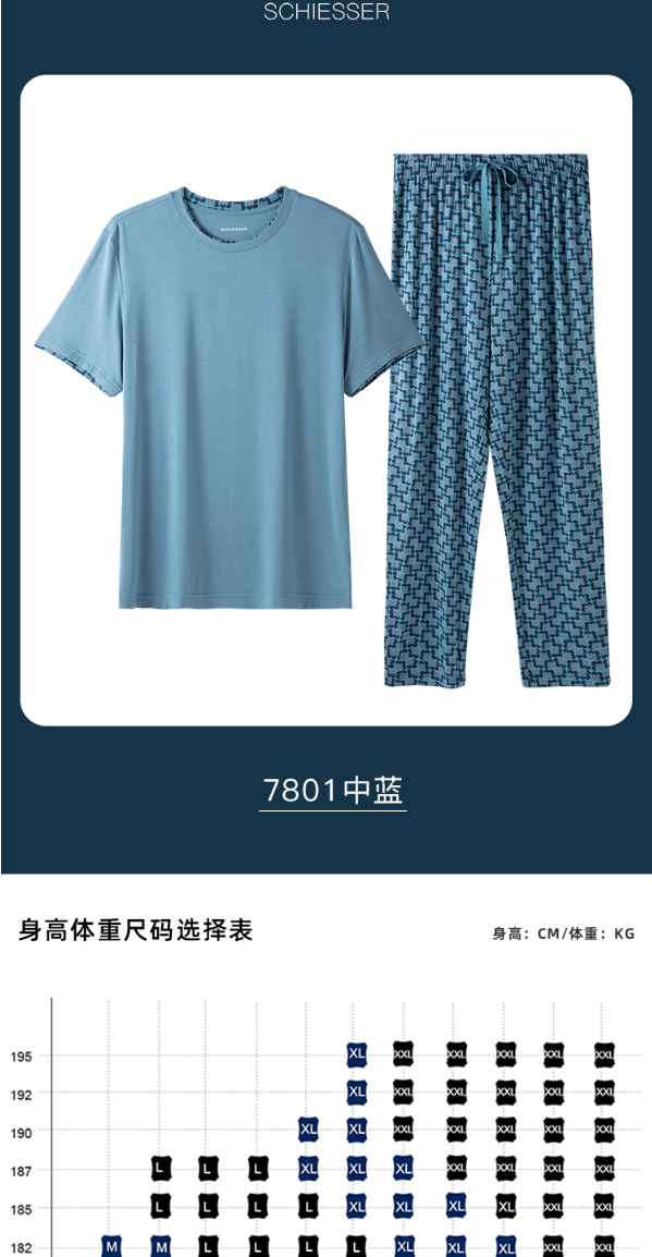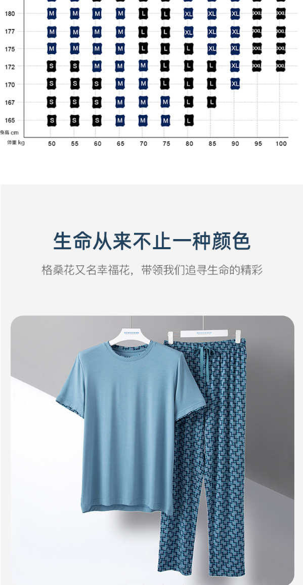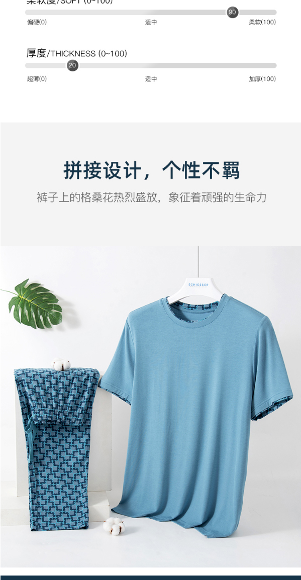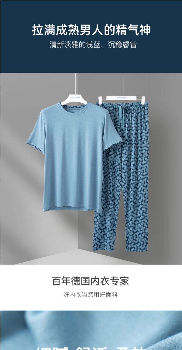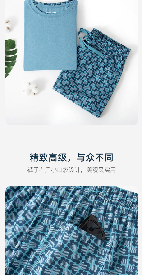 舒雅睡衣男士莫代尔家居服2022春季新款短袖长裤印花套装39/19620H