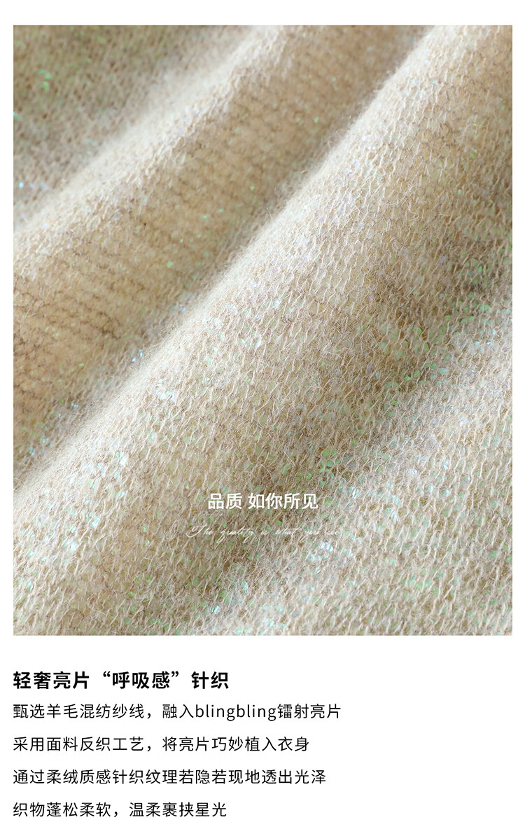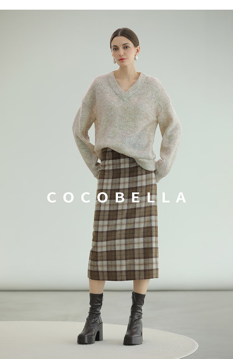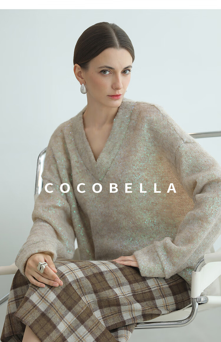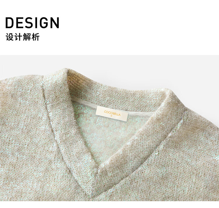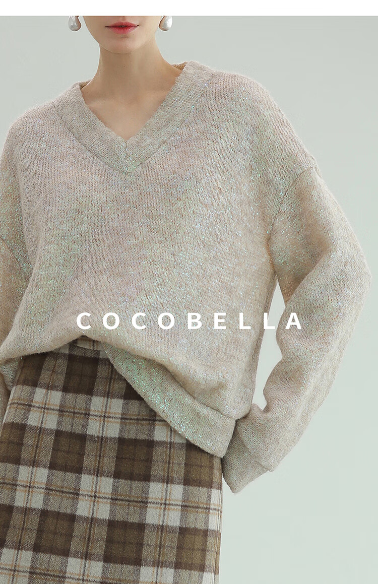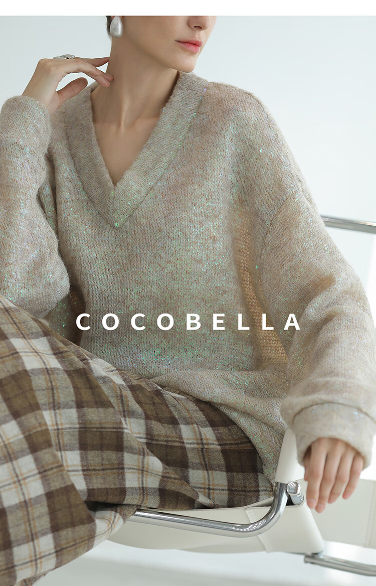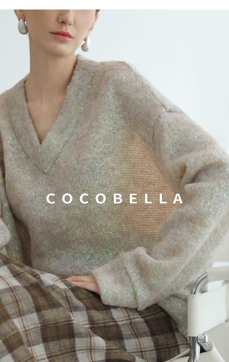COCOBELLA手工幻彩亮片V领通勤毛衣25秋冬保暖女针织衫MZ3206