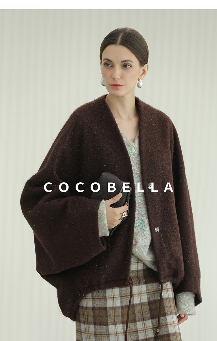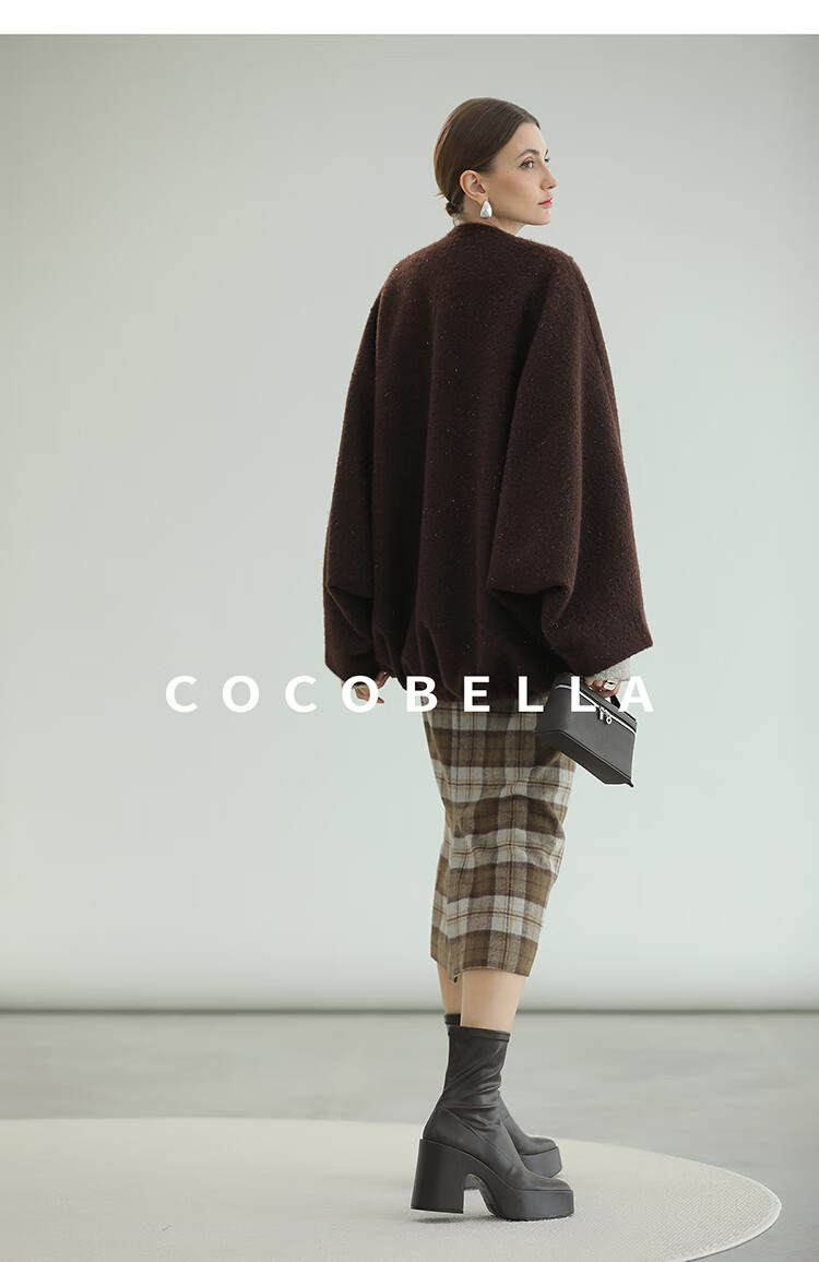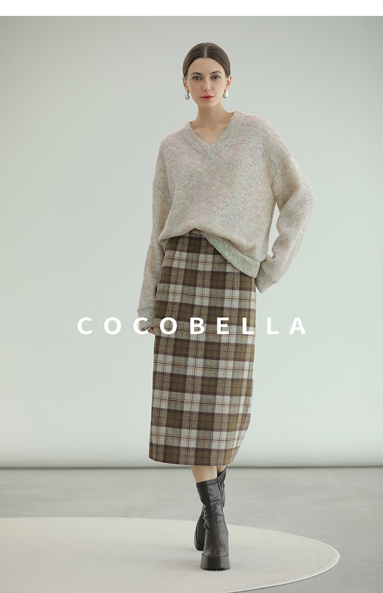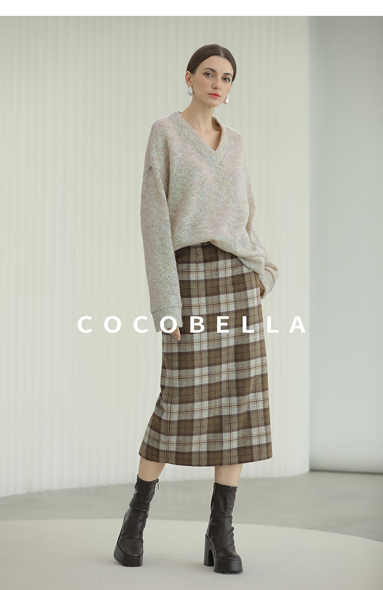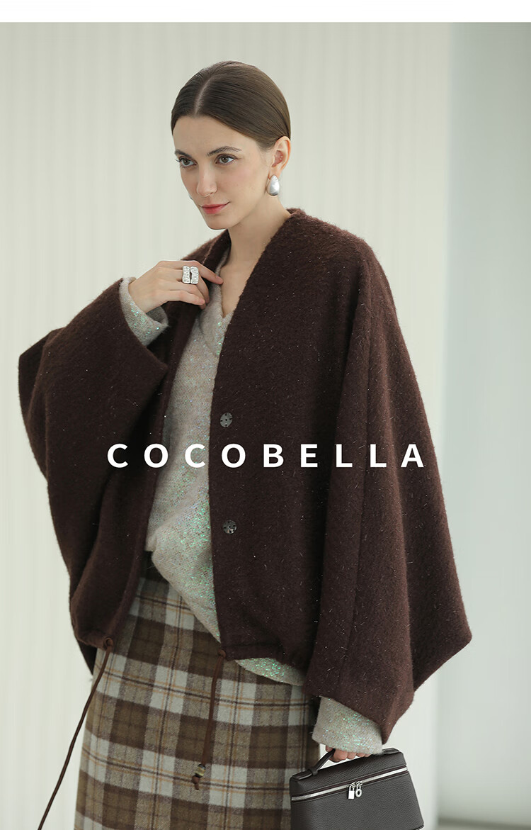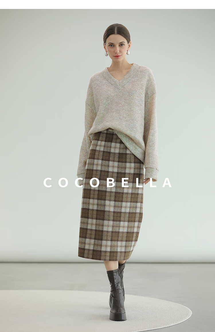 COCOBELLA手工幻彩亮片V领通勤毛衣25秋冬保暖女针织衫MZ3206