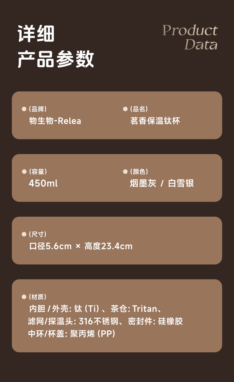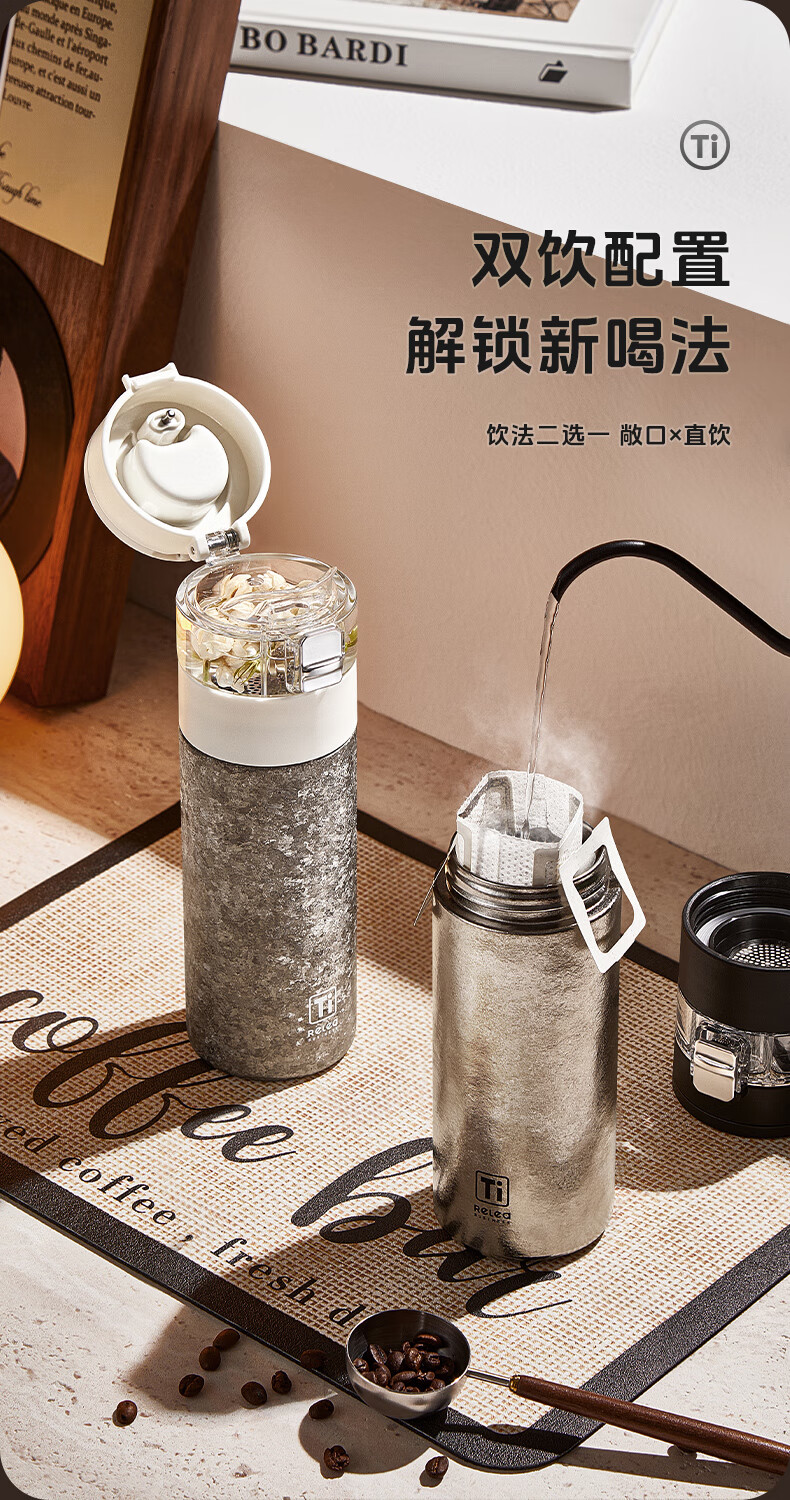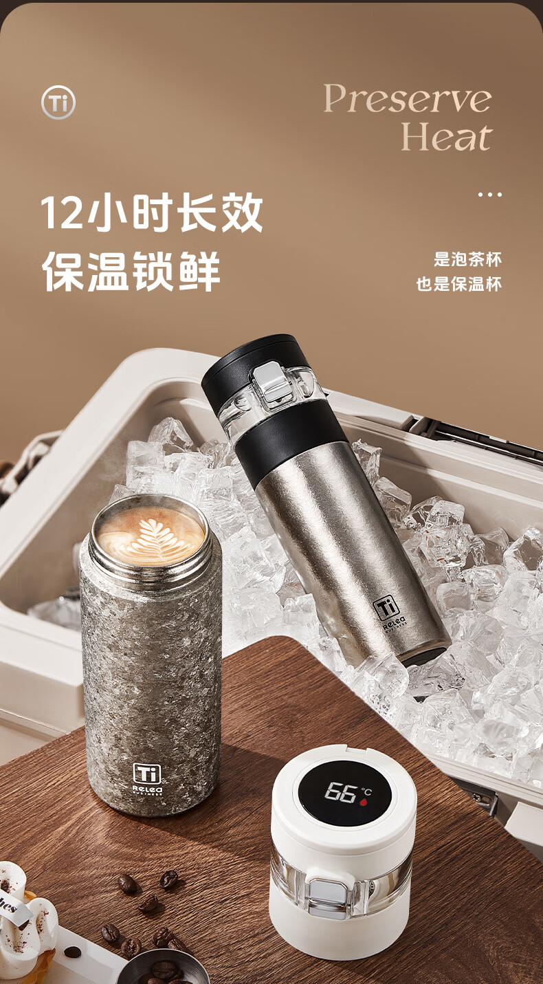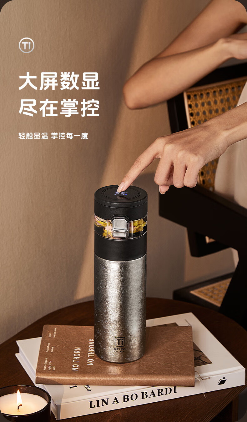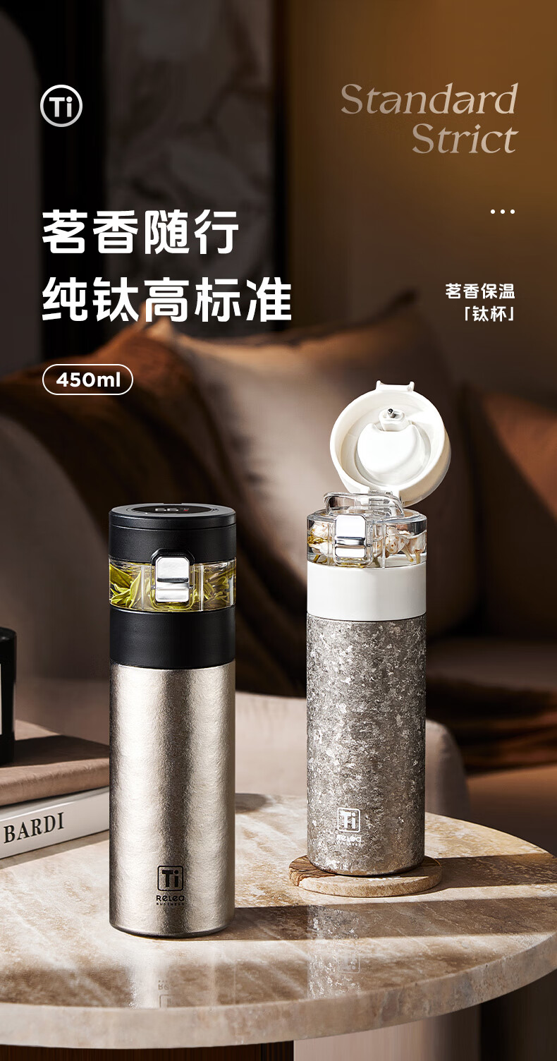 物生物(RELEA)纯钛泡茶保温杯茶水分离水杯子男女智能显温便携礼盒款 JV012479-0450