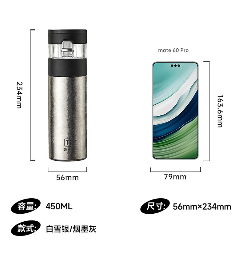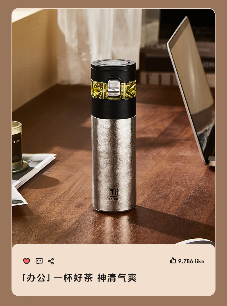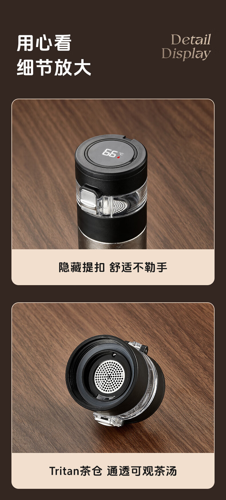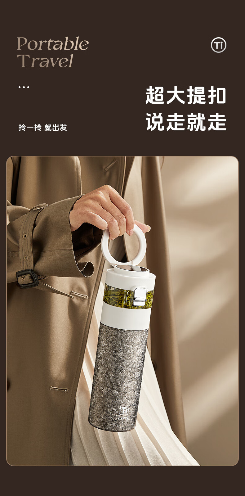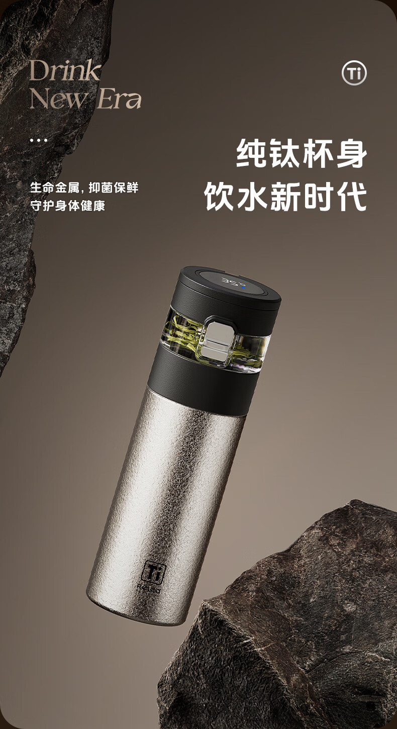 物生物(RELEA)纯钛泡茶保温杯茶水分离水杯子男女智能显温便携礼盒款 JV012479-0450