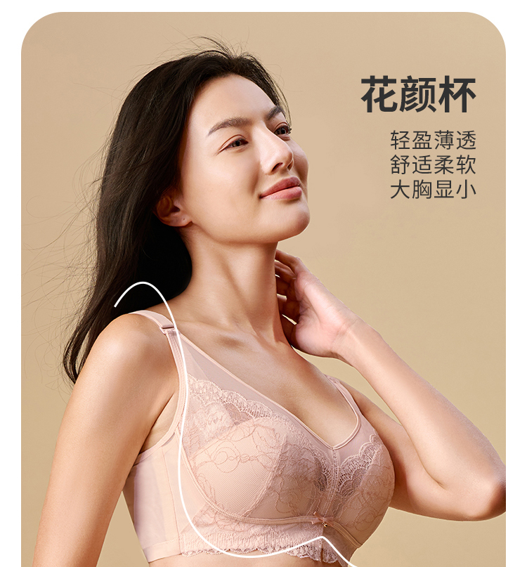 都市丽人Vbra内衣无尺码中厚3/4杯蕾丝文胸三排无钢圈LB368K