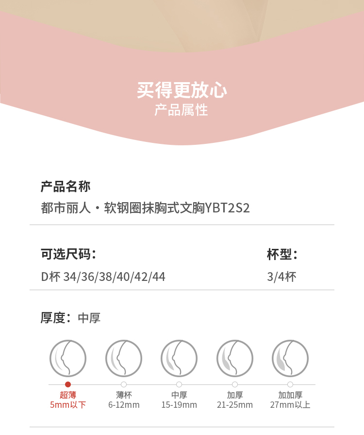 都市丽人内衣完美包容常规文胸蕾丝超薄文胸3/4杯四排扣软钢圈YBT2S2
