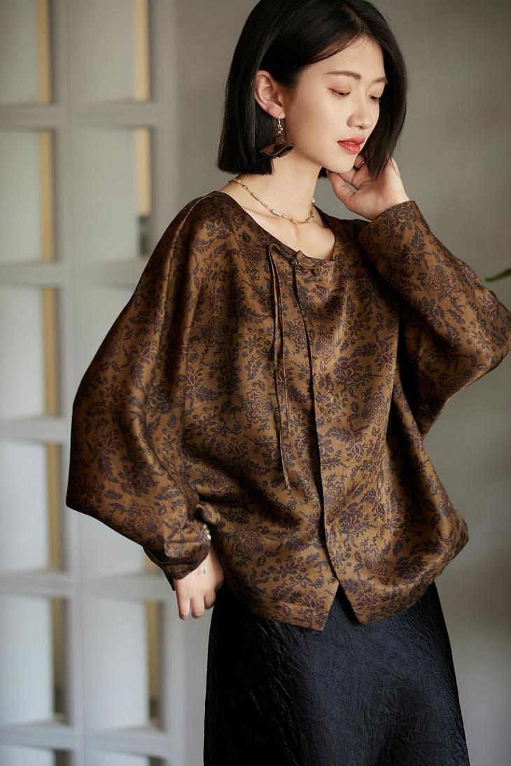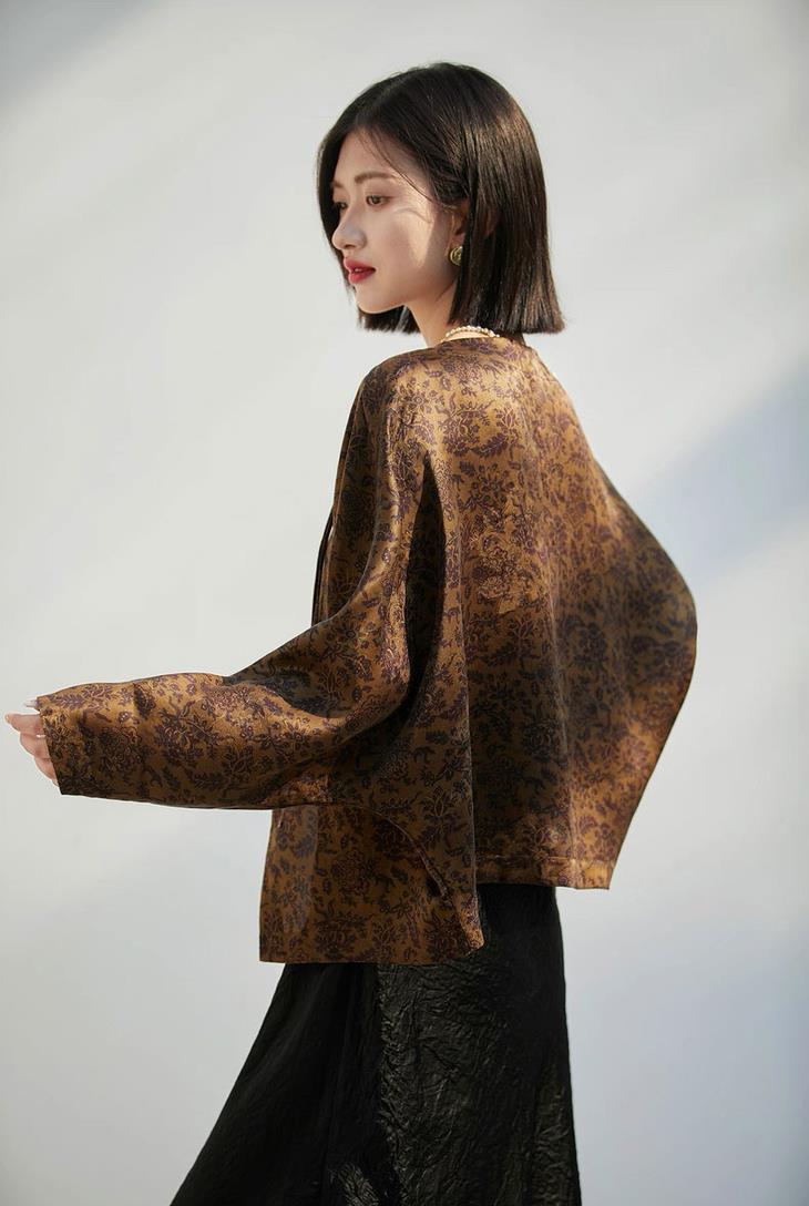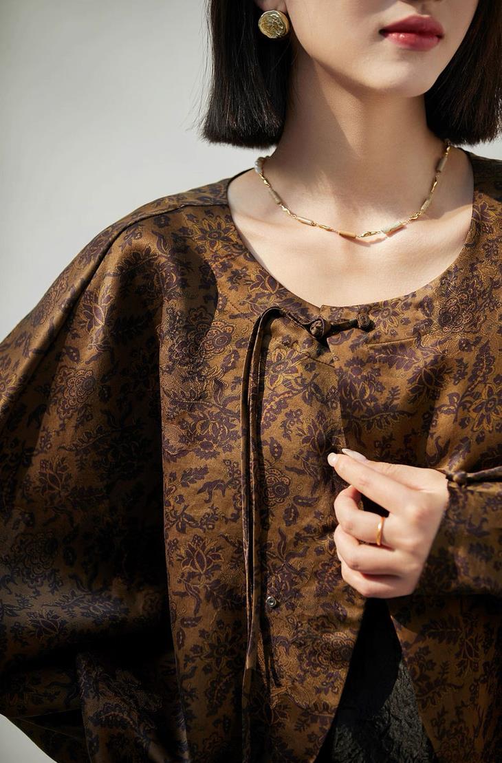 当秋日的风略过肩头,这件暮金纱新中式提花外套成了妥帖的应答。