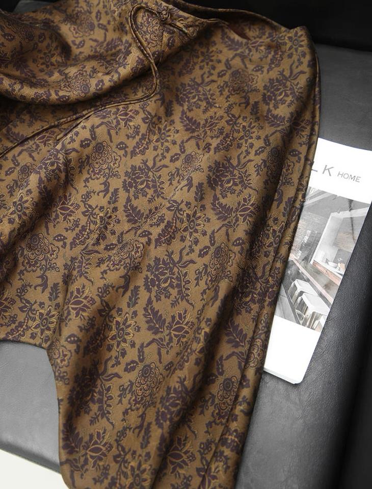 比如说眼前这一件暮金纱新中式提花外套,如秋日暮色之景,明暗交错光影视觉斑驳感,是秋日独一份的清冷感。